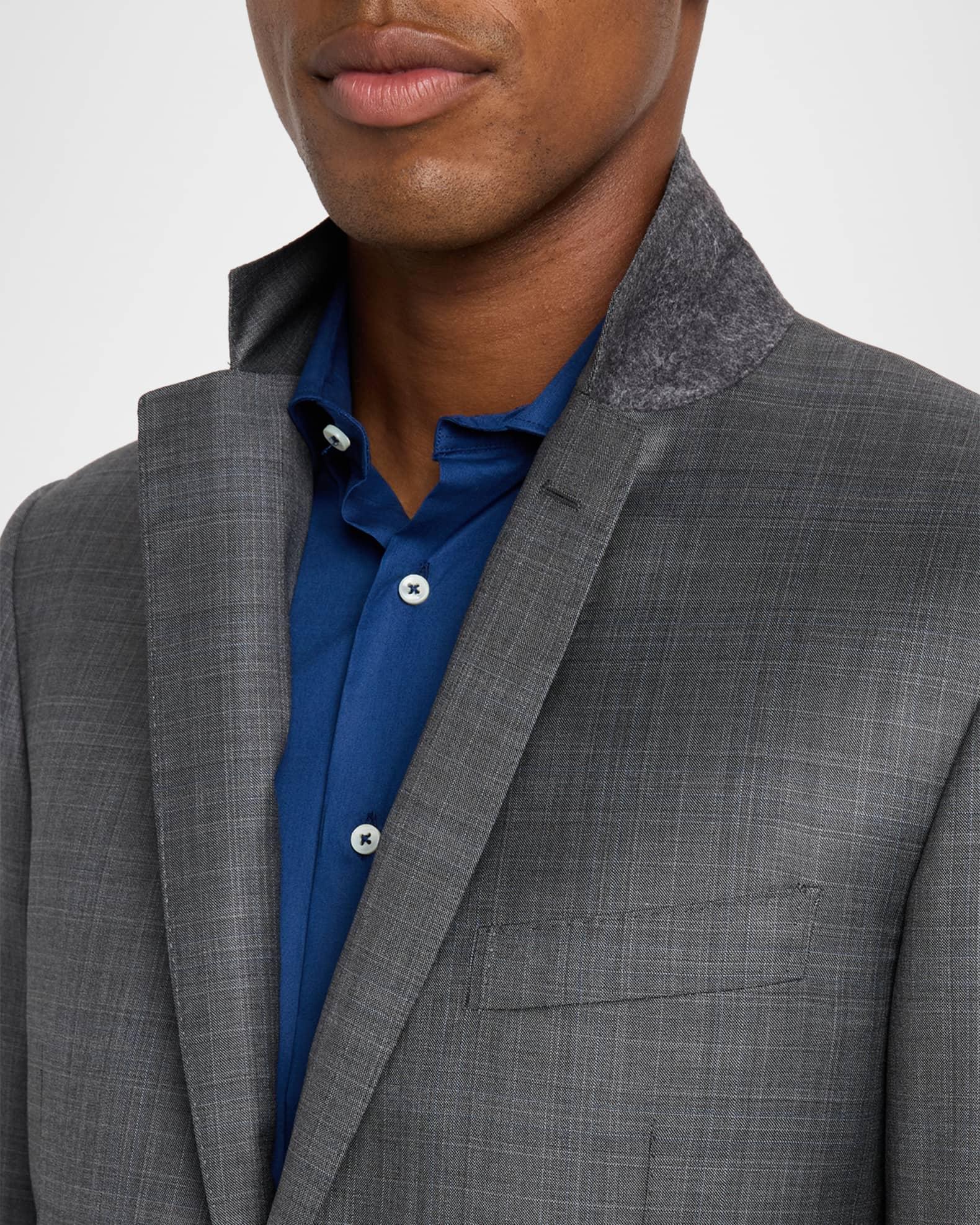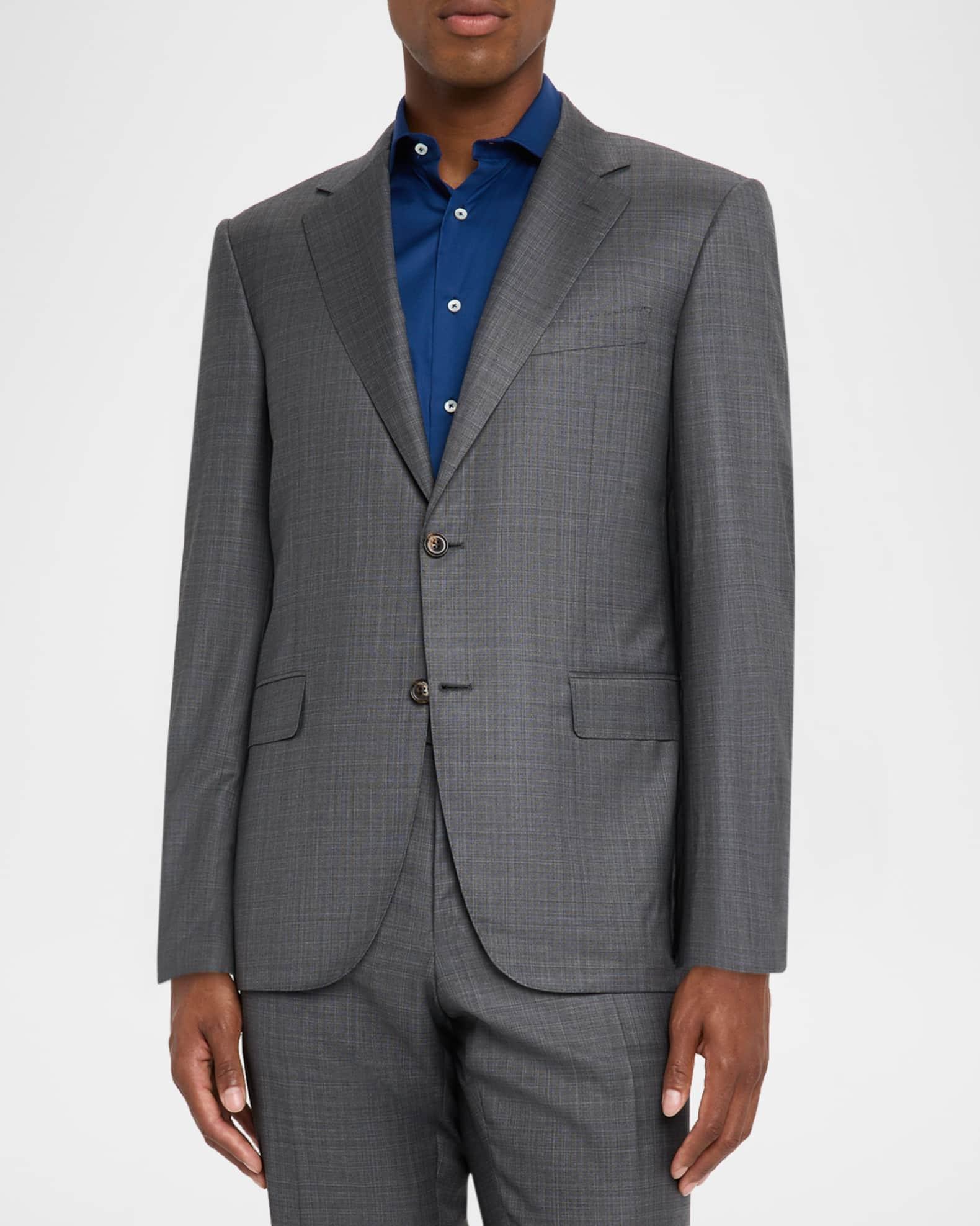 Canali two-piece suit in a wool and silk blend for a lustrous finish Modern fit Wool/silk Lining: Rayon Dry clean Made in Italy Jacket: Notched lapels Single-breasted front Chest welt pocket Hip flap pockets Internal breast pocket Basted sleeves Double-vented back Pants: Regular rise Flat front Side slip pockets Straight legs Extended button-zip front Unfinished hem to be tailored to desired length