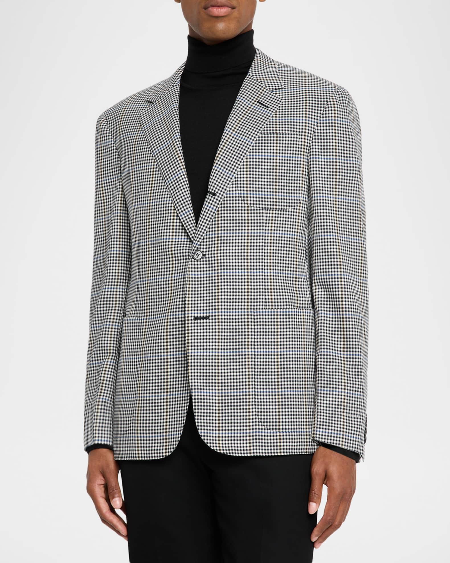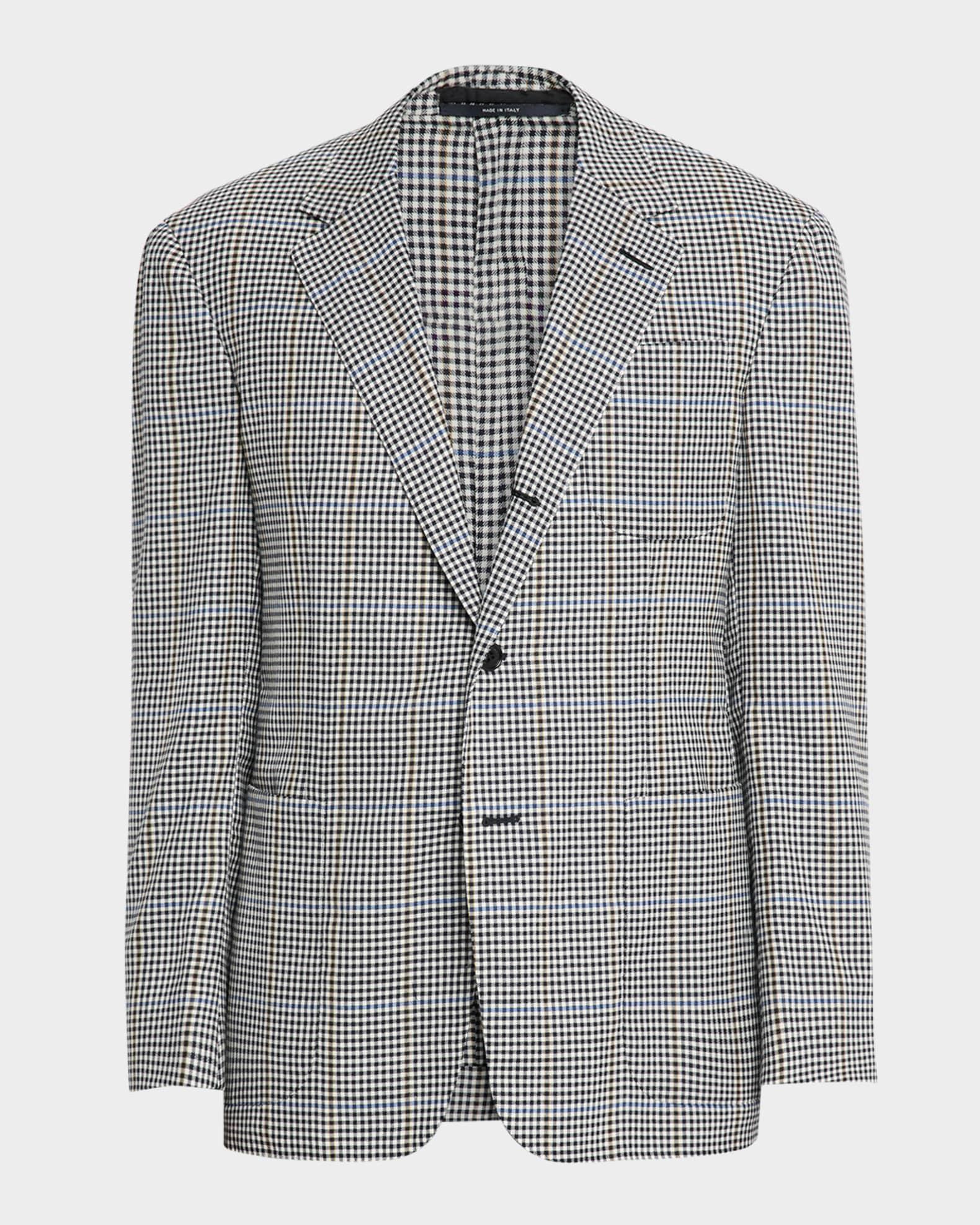 dunhill sport jacket in merino wool highlighted with a micro-gingham check print Notched lapels Single-breasted front Three front patch pockets Long sleeves Four-button cuffs Double-vented back Merino wool Lining: Cupro Dry clean Made in Italy