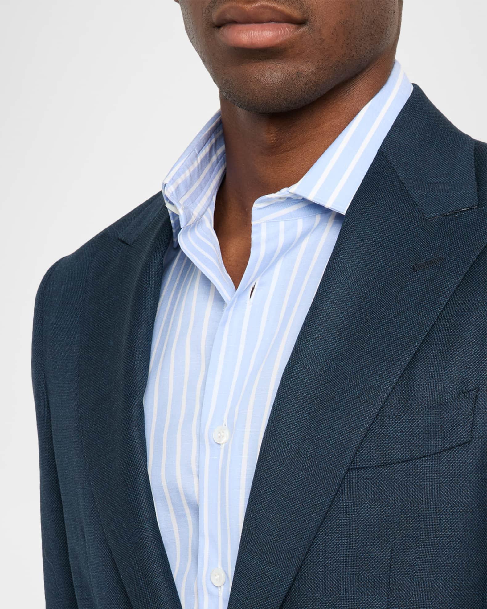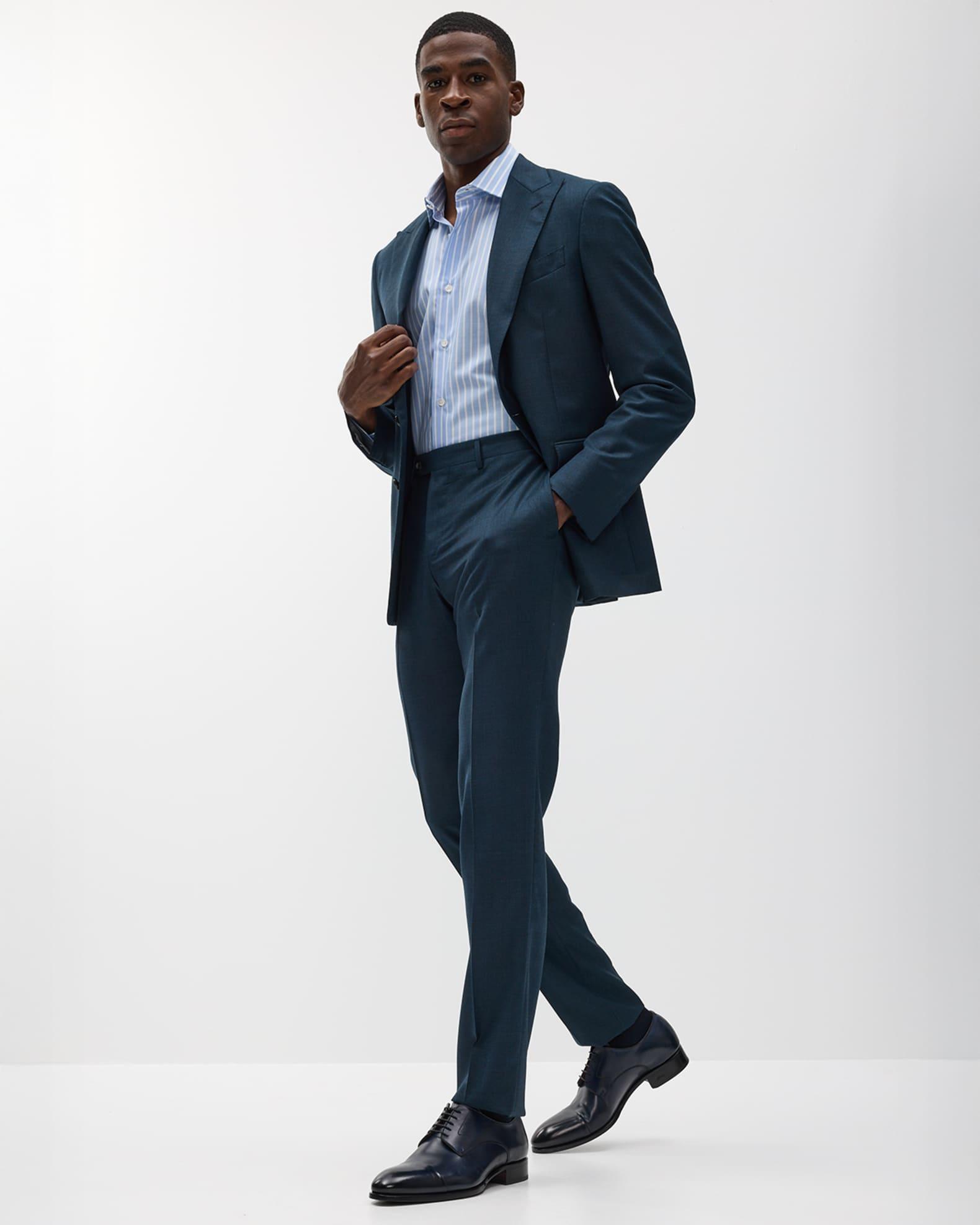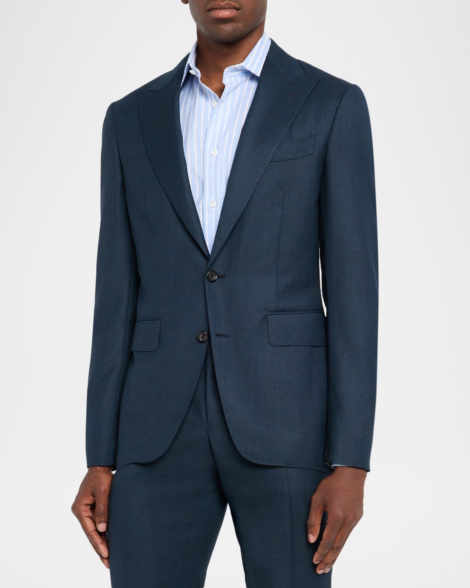 Canali two-piece suit crafted from wool with a subtle woven windowpane pattern Classic fit Wool Lining: Cupro Dry clean Made in Italy Jacket: Peak lapels Single-breasted front Barchetta chest pocket Hip flap pockets Internal breast pocket Double-vented back Trousers: Regular rise Front creasing Side slip pockets Straight legs Extended button-zip front; belt loops Unfinished hem to be tailored to desired length