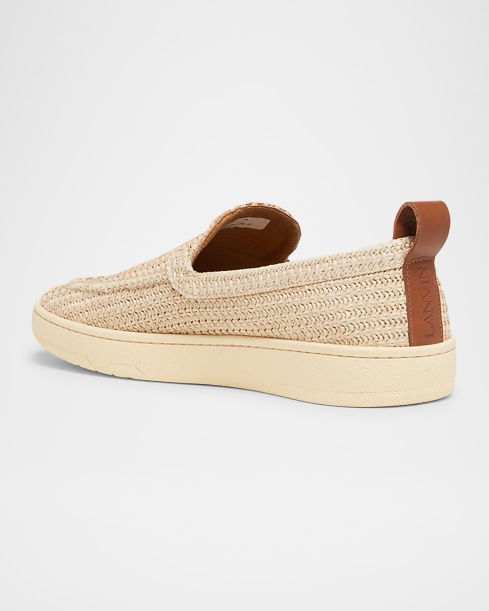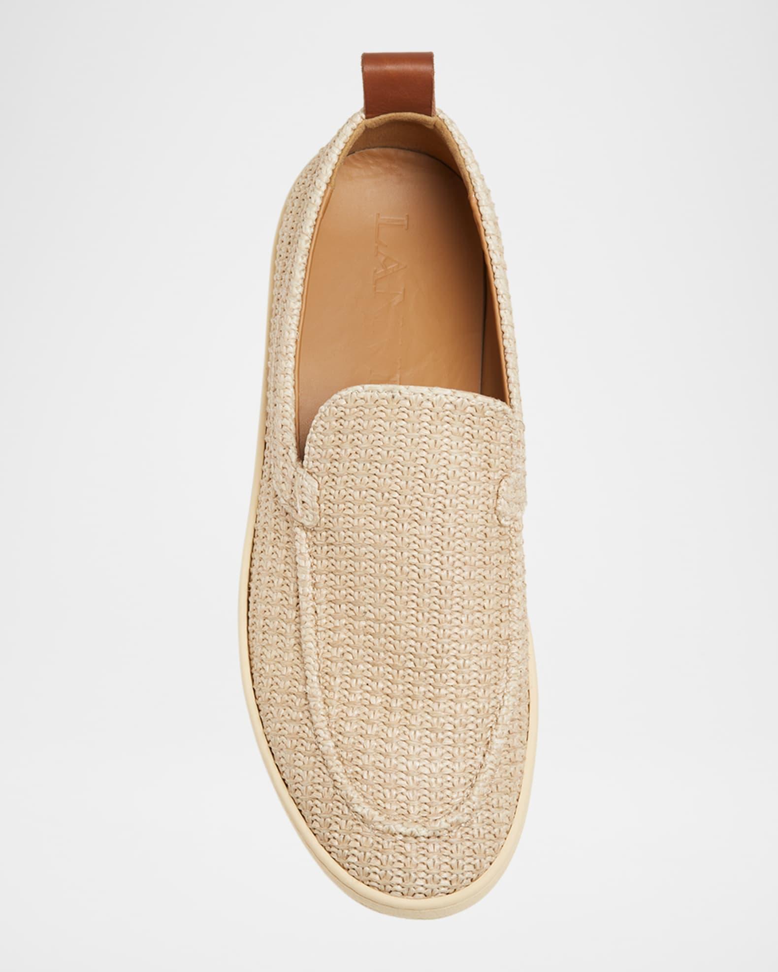 Lanvin loafers featuring a woven raffia design Flat heel Round toe Notched vamp Branded backstay leather pull tab Slip-on style Made in Portugal