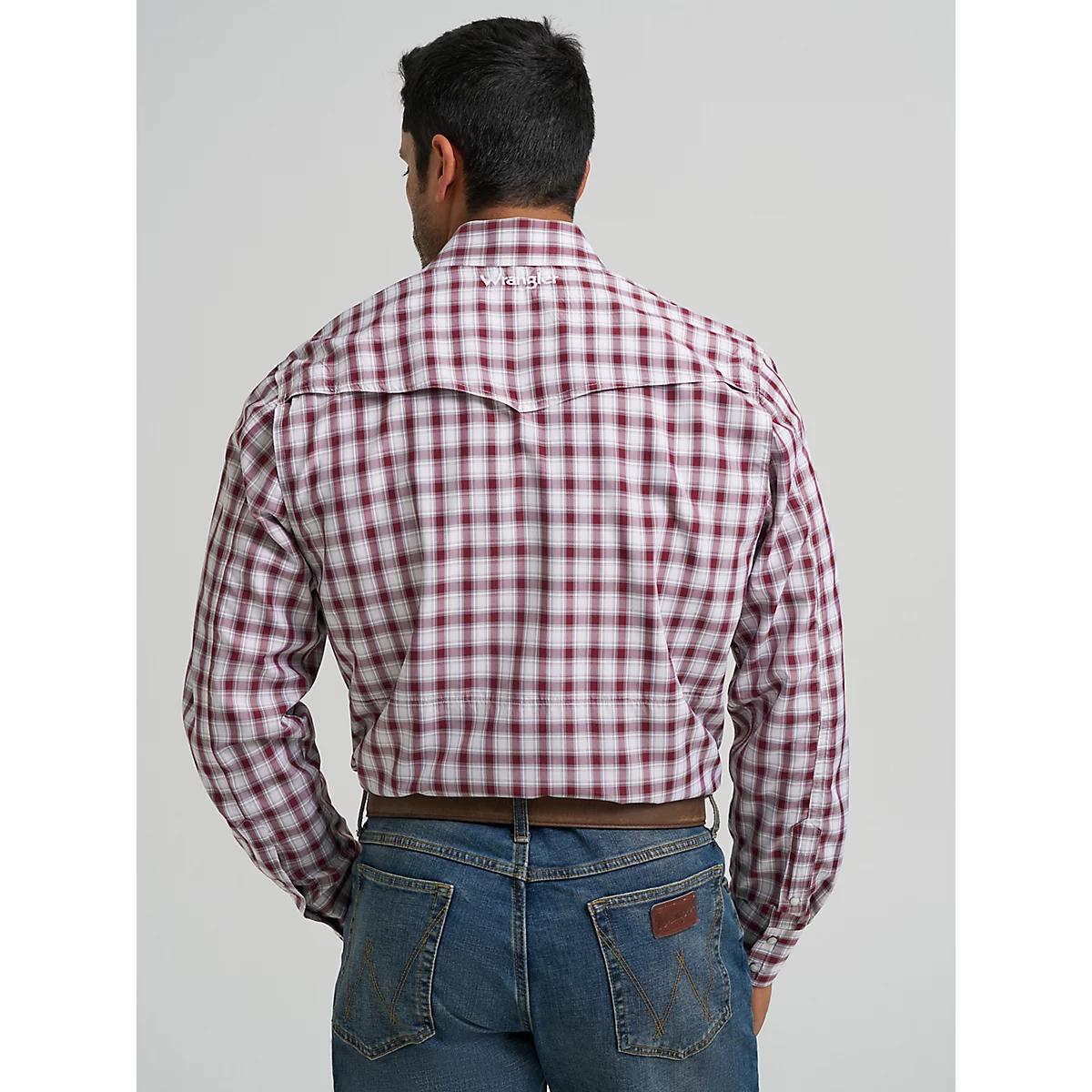 COWBOY LEVEL PERFORMANCEAll the western styling you love and want with the performance features you need. This long-sleeve plaid snap shirt comes fully equipped with UV protection and a moisture-wicking finish to keep you protected from the elements. This classic fit shirt comes with pointed yokes and a full snap closure as well as a hidden snap-down collar to keep you looking polished and ready for whatever the day brings. A hidden back vent makes this shirt even more breathable and built-in sleeve keepers make it easy to adjust your look on the fly. Between the two chest pockets and zippered Napoleon-style pocket on the left, you’ll have plenty of storage space for your essentials. Plus, it comes with a glasses cleaner at the hem to keep you smudge-free. Wear it with your favorite pair of Wrangler Retro® or 20X® jeans to complete the outfit