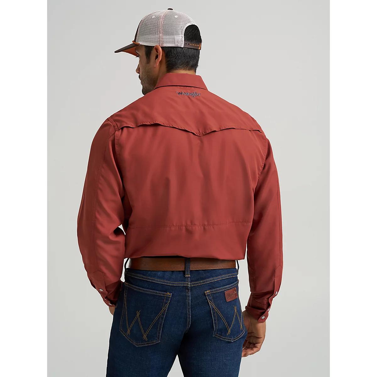 WESTERN RELIABILITYTake on the unexpected in one of our most dependable shirts. The Wrangler® performance long-sleeve solid snap shirt comes with everything you need to take on the day, including UV protection from the sun’s harmful rays and a moisture-wicking finish to keep you feeling dry. This classic fit shirt is crafted for unparalleled performance and comfort, complete with a back vent for breathability. It also features that classic western styling you know and love, including pointed yokes and a full snap closure. You’ll have plenty of space for your essentials between the double chest pockets, a Napoleon-style pocket on the left chest pocket, a dedicated pencil slot, and a glasses cleaner at the hem. Wear this performance snap shirt with your favorite pair of Wrangler jeans or utility pants for a formidable outfit.