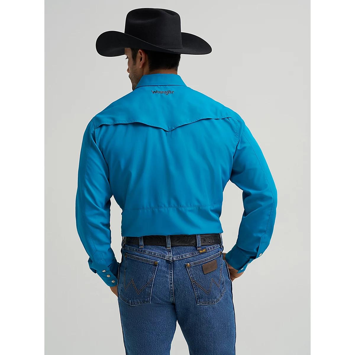Men's Wrangler Performance Snap Long Sleeve Solid Shirt in Teal
