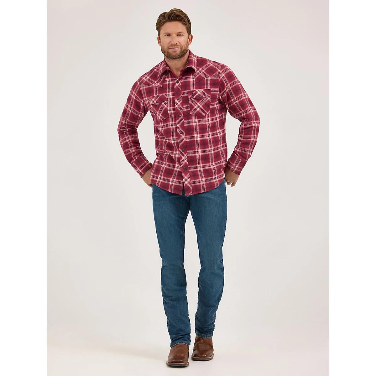 Men's Wrangler Retro® Long Sleeve Flannel Western Snap Plaid Shirt in Holly Berry