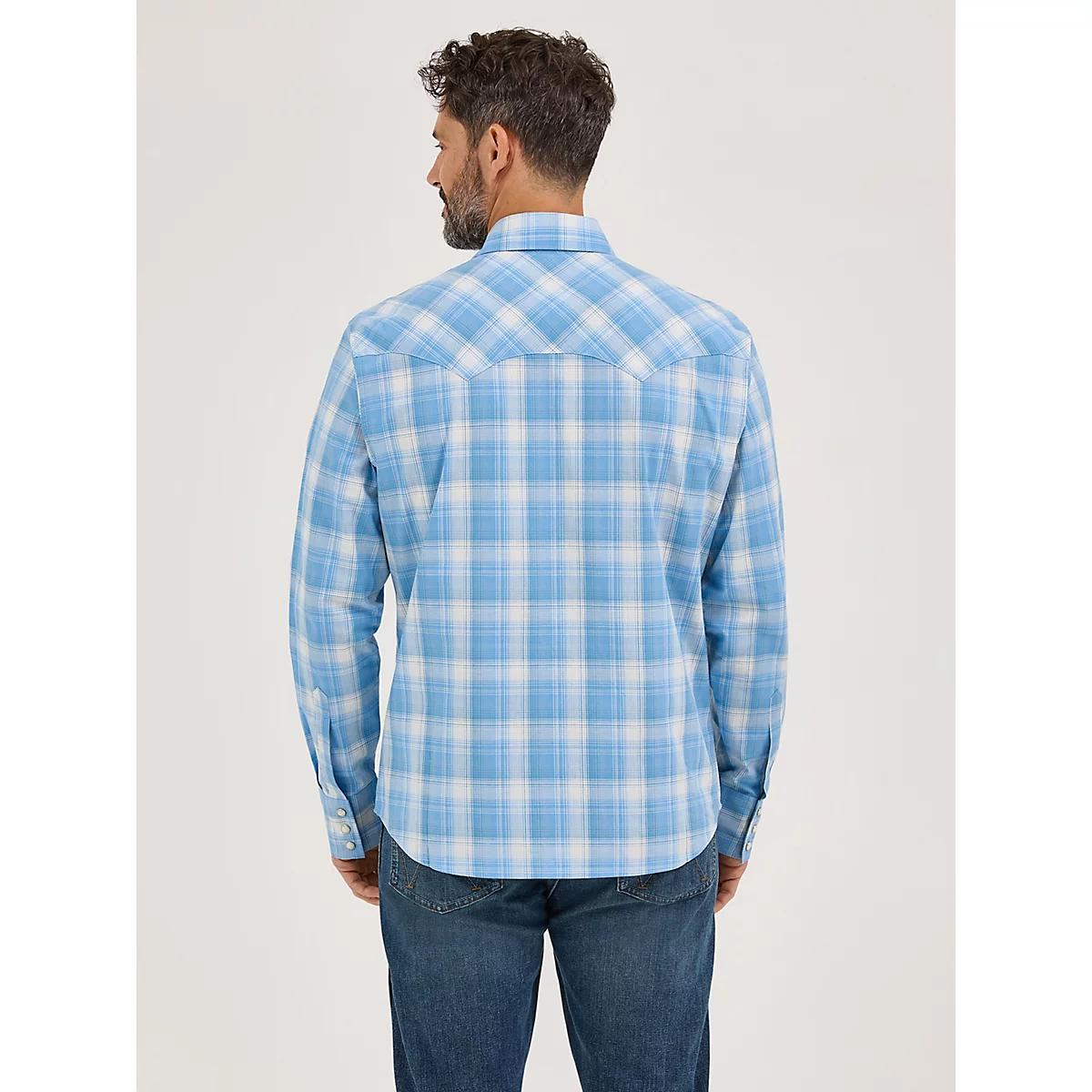 Men's Wrangler Retro® Long Sleeve Sawtooth Snap Pocket Western Shirt in Cloudy