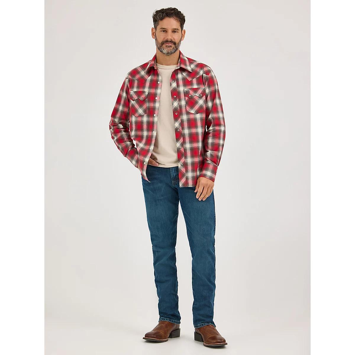 Men's Wrangler Retro® Long Sleeve Sawtooth Snap Pocket Western Shirt in Firetruck