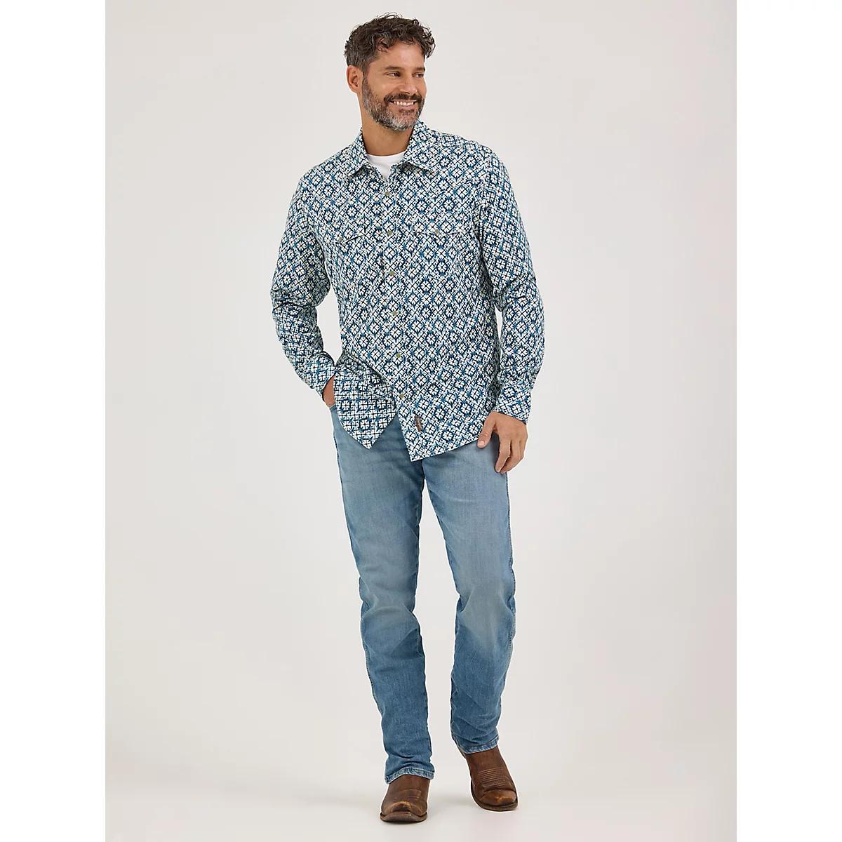 Men's Wrangler Retro® Premium Long Sleeve Western Snap Printed Shirt in Indigo Dye