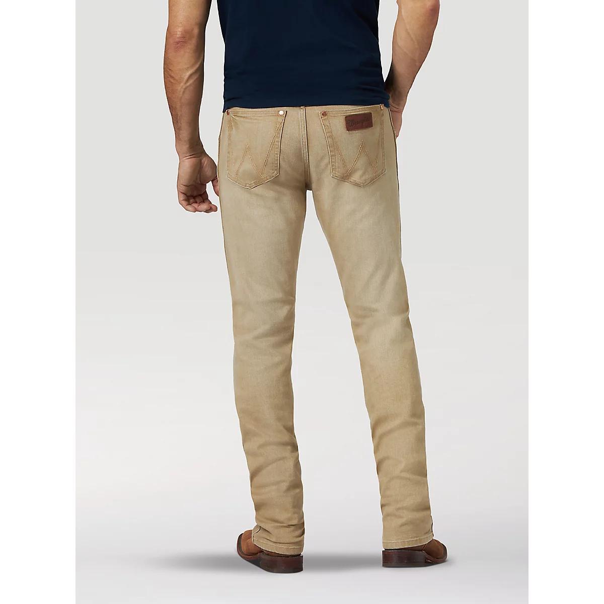 ELEVATE YOUR DENIM WITH RETRO® PREMIUM.The Men's Wrangler Retro® Premium Slim Fit Straight Leg Jean is nothing less than incredible. Enhanced with denim specifically crafted to have superior stretch recovery, meaning they will hold their shape throughout the day without bagging or sagging. You will also find your favorite seven Wrangler icons; copper rivets, rope logo shank, leather patch, w pocket stitching, seven belt loops with reinforced tacking, rodeo watch pocket and back yoke over body. This jean sits below the waist, is slim through the seat, thigh, and knee and features a sleek, straight leg.