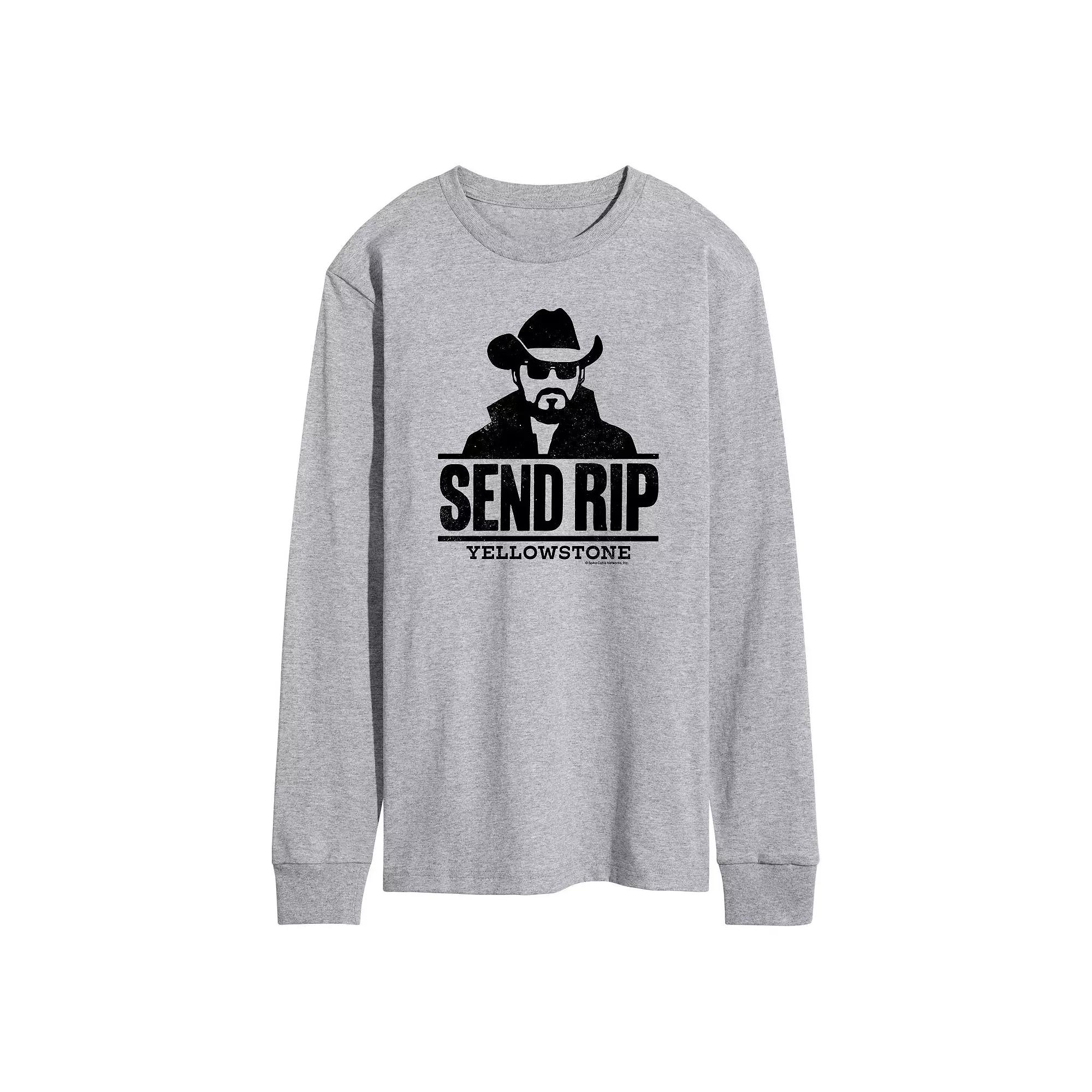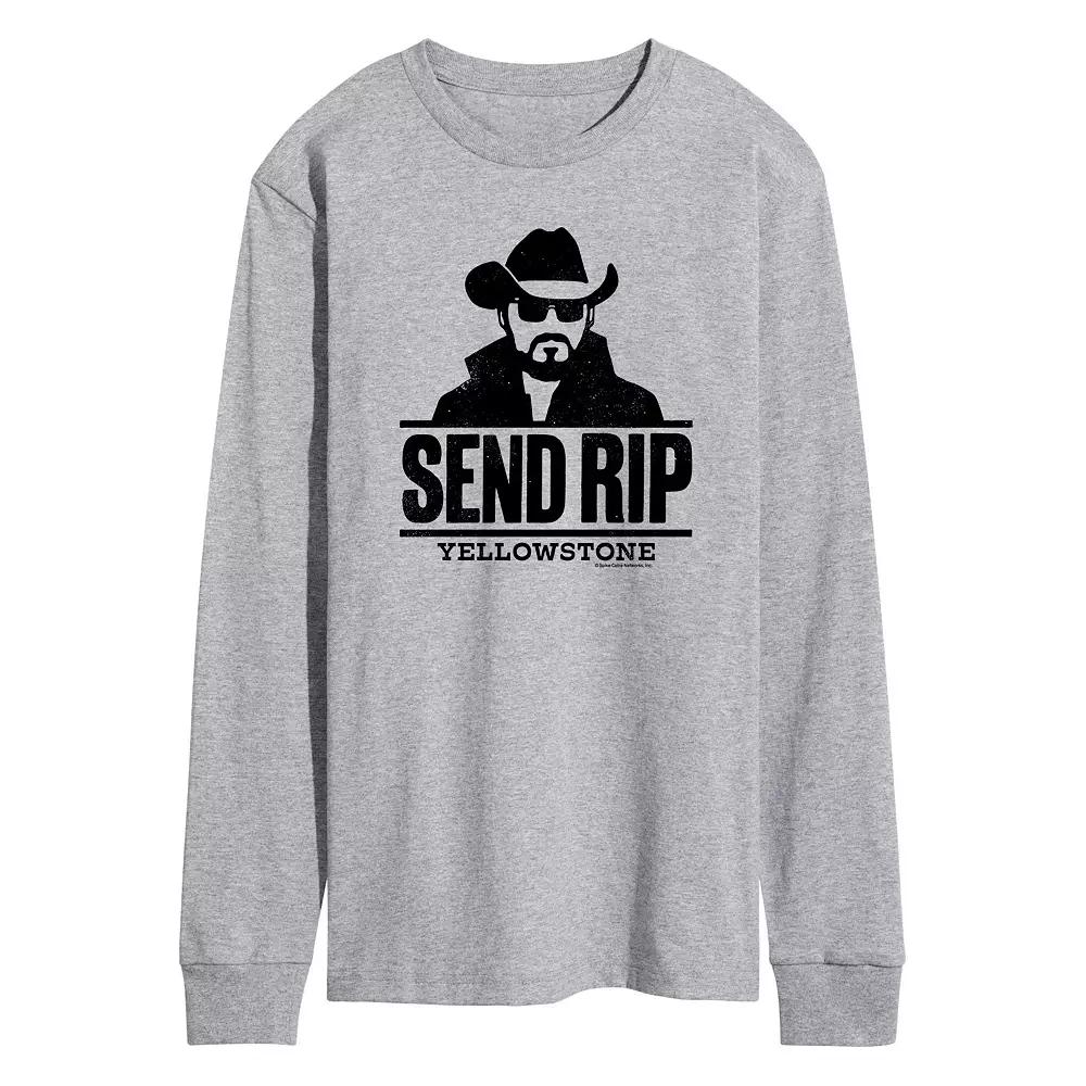 Heather Gray Yellowstone Send Rip Long-Sleeve Tee - Men. Hell feel at home on the ranch in this cozy long-sleeve tee boasting a subtle hi-low hem and a grin-worthy graphic from his favorite TV show.Full graphic text: Got a problem? Send Rip. Dutton Ranch.100% cottonMachine wash; tumble dryImported, screen printed in the USA