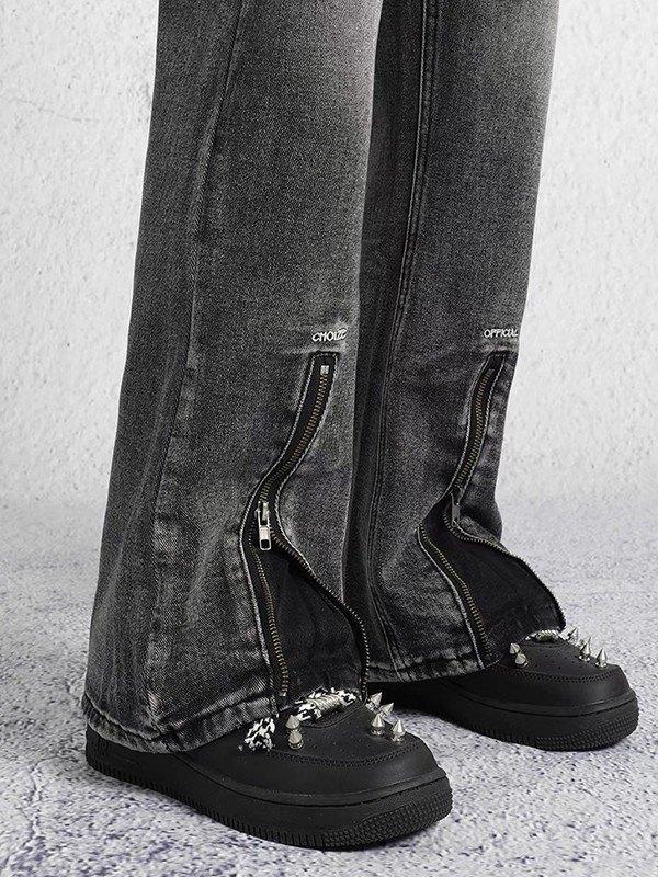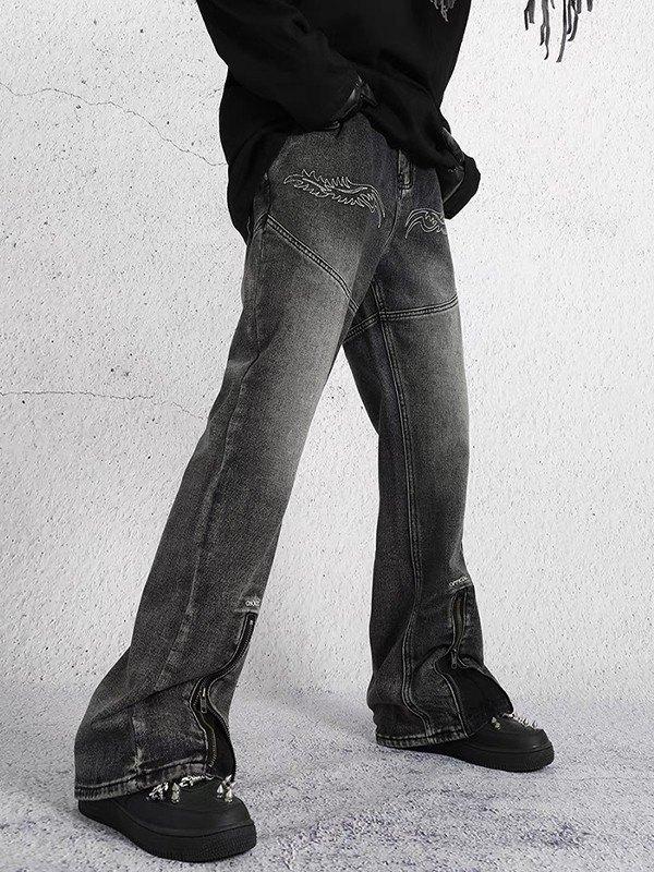 Sopula Men's Zipper Street Style Micro-Flare Raw Edge Jeans