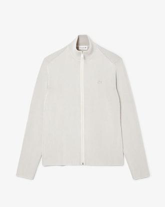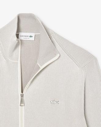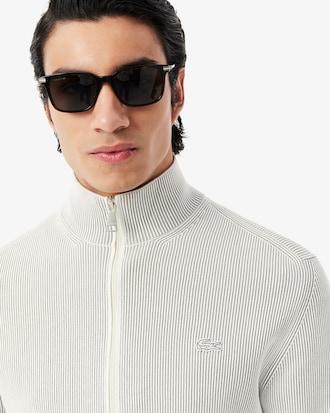 This zipped sweater is the fruit of 90 years of Lacoste elegance and knitwear expertise. Made from cotton crepe yarn with chic two-tone stripes for a fluid result with a cool feel. A timeless design with premium, functional details including a double-ended center zip.