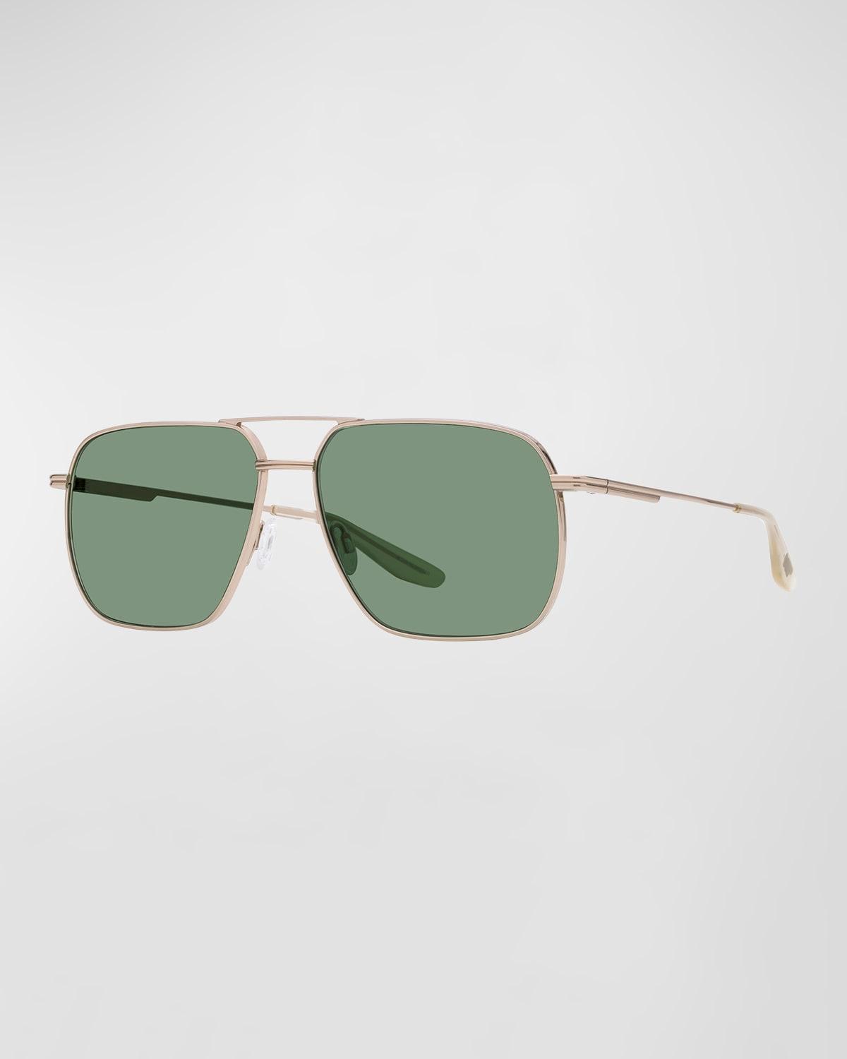 From the Seven Legacy Collection. Inspired by the stylish sunglasses James Bond wore in casino royale. This re-designed high-stakes aviators feature a thematic spade breath lens logo, thick gauge titanium, bi-color plating, seven logo temple plaque and seven case and cleaning cloth. 100% UV protection Solid lenses Titanium Made in Japan SIZE 61mm lens width 15mm bridge width 147mm temple length. Soft Accessories - Men Sunglasses > Barton Perreira > Saks Fifth Avenue > Barneys. Barton Perreira. Color: Gold Bottle Green.