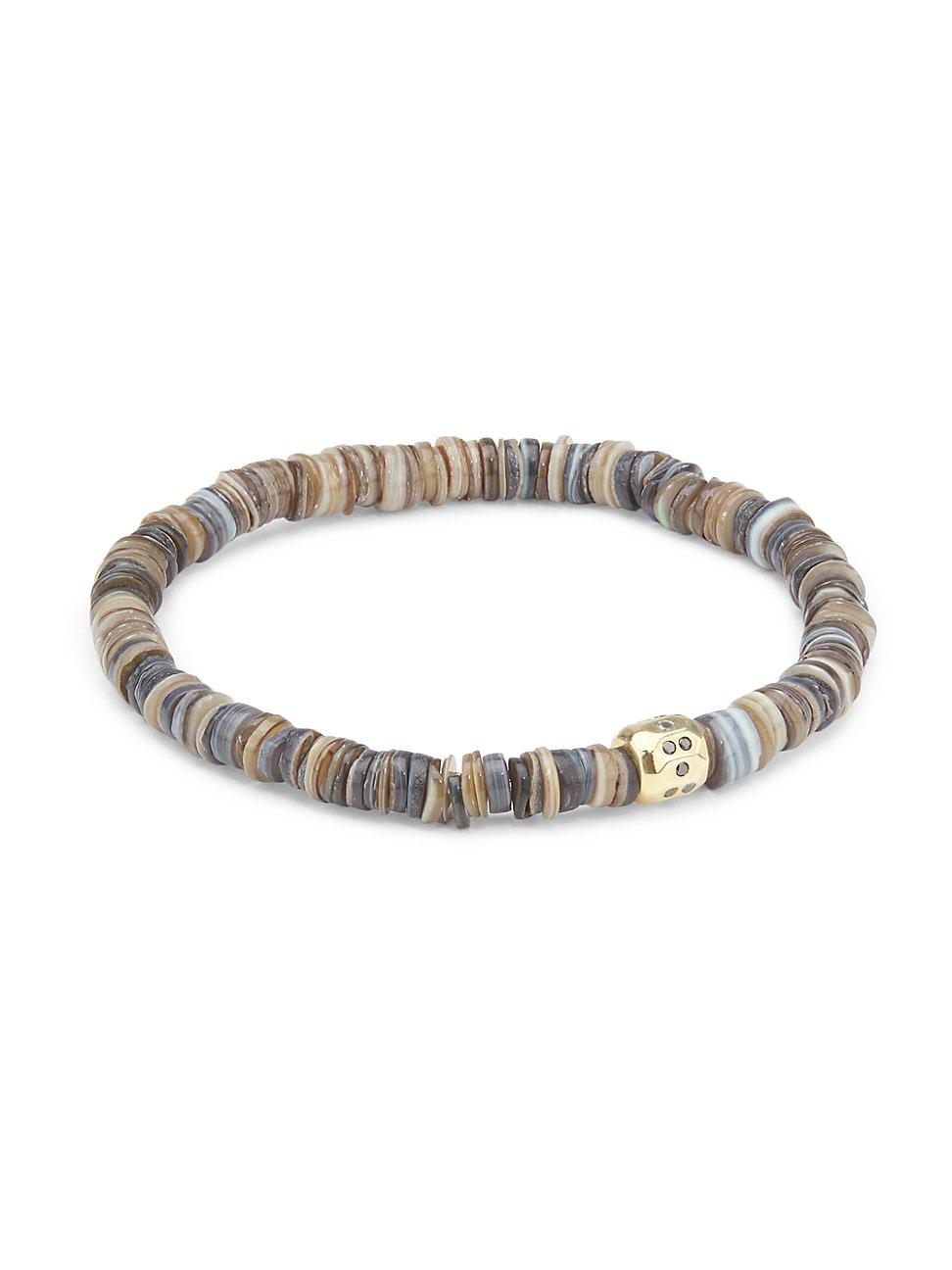 Threaded with vibrant blue Pueblo rondelles, Luis Morais stretch bracelet features a single faceted 14K-yellow-gold bead studded with shimmering blue sapphires. Blue sapphires, 0.15 tcw Pueblo beads 14K yellow gold Slip-on style Made in USA SIZE Length, about 7.5. Men Accessories - Jewelry > Luis Morais > Saks Fifth Avenue > Barneys. Luis Morais. Color: Blue.