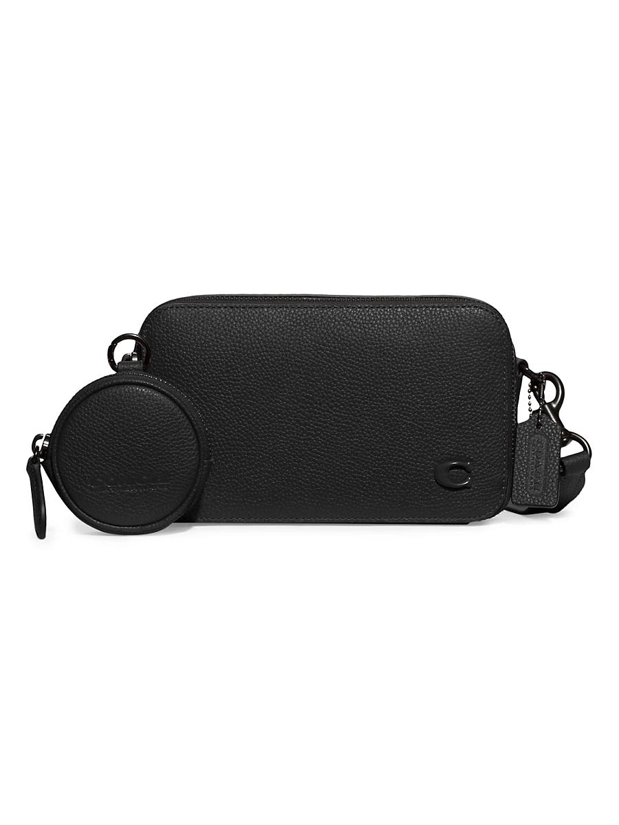 Crafted of soft pebbled leather, this COACH wallet is detailed with a debossed logo at the front and comes with a detachable circular pouch and an attached hinged key ring. Zip-around closure Six card slots Logo jacquard lining Dark metal hardware Leather Spot clean Made in Italy SIZE Detachable leather chain strap with 3 1/4 drop Detachable strap with 23.5 drop 7.5 L x 5 H x 1.5D Pouch: 3.5L x 3.5H x 1D. Men Accessories - Belts > Coach > Saks Fifth Avenue > Barneys. COACH. Color: Black.