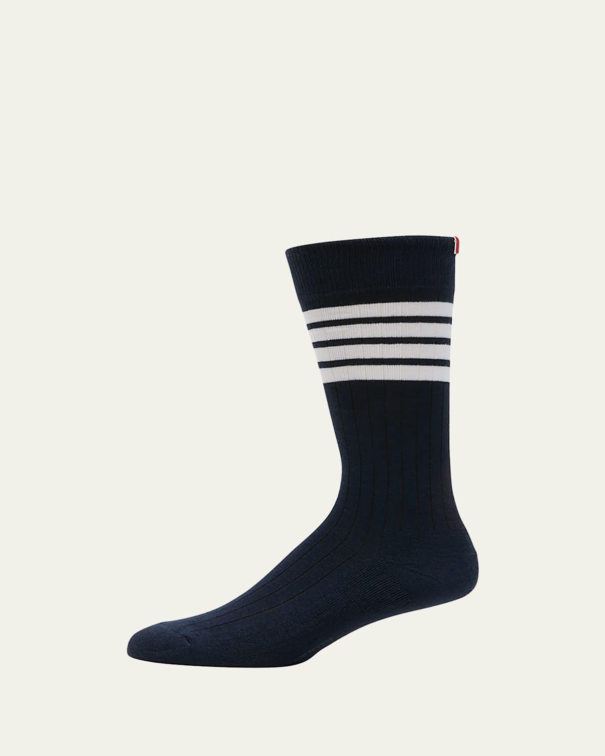 Thom Browne mid-calf socks in lightweight cotton with the signature 4-bar motif Ribbed cuff to prevent slipping Signature stripe grosgrain tab Cotton/polyamide/elastane Made in Italy