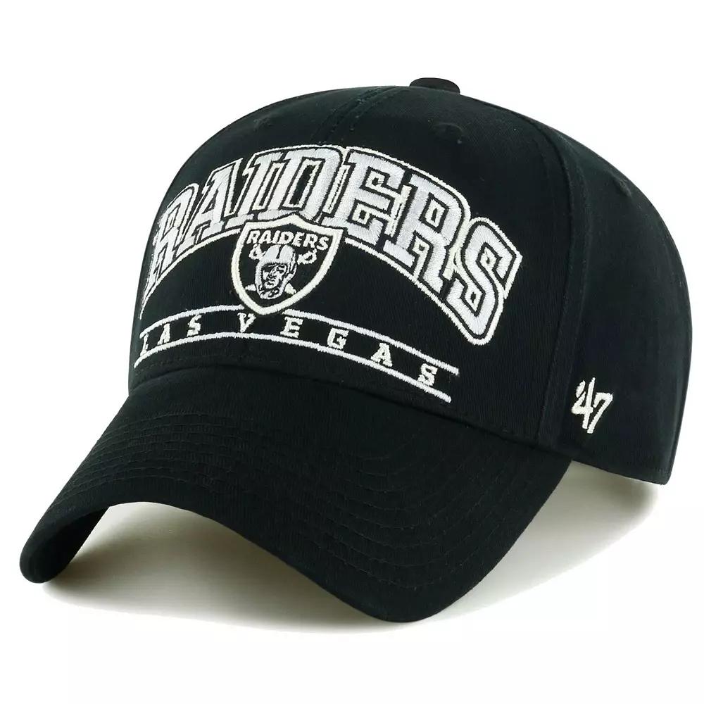 Top your game day outfit off with a fitting nod to your Nfl favorites by reaching for this Fletcher Mvp adjustable hat from 47 Brand. It features unmistakable Las Vegas Raiders graphics across the front panels for a bold display of enthusiasm, and it comes in the teams color for added team spirit. The easily adjustable fabric strap closure makes finding the right fit a breeze, so youll be raring and ready to go when the Las Vegas Raiders hit the gridiron.