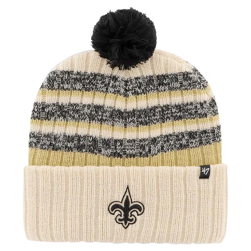 Liven up your winter wardrobe with this New Orleans Saints Tavern cuffed knit hat from 47. It features an embroidered team patch and a matching stripe design. A solid pom completes the vibrant look of this New Orleans Saints headwear.Liven up your winter wardrobe with this New Orleans Saints Tavern cuffed knit hat from 47. It features an embroidered team patch and a matching stripe design. A solid pom completes the vibrant look of this New Orleans Saints headwear.PRODUCT FEATURESPom on topOfficially licensedImportedMaterial: 100% AcrylicHand wash, drip dryOne size fits mostKnit designBrand: 47Embroidered graphics with raised detailsCuffed Size: One Size. Color: Beige Over. Gender: male. Age Group: adult. Material: COTTON.