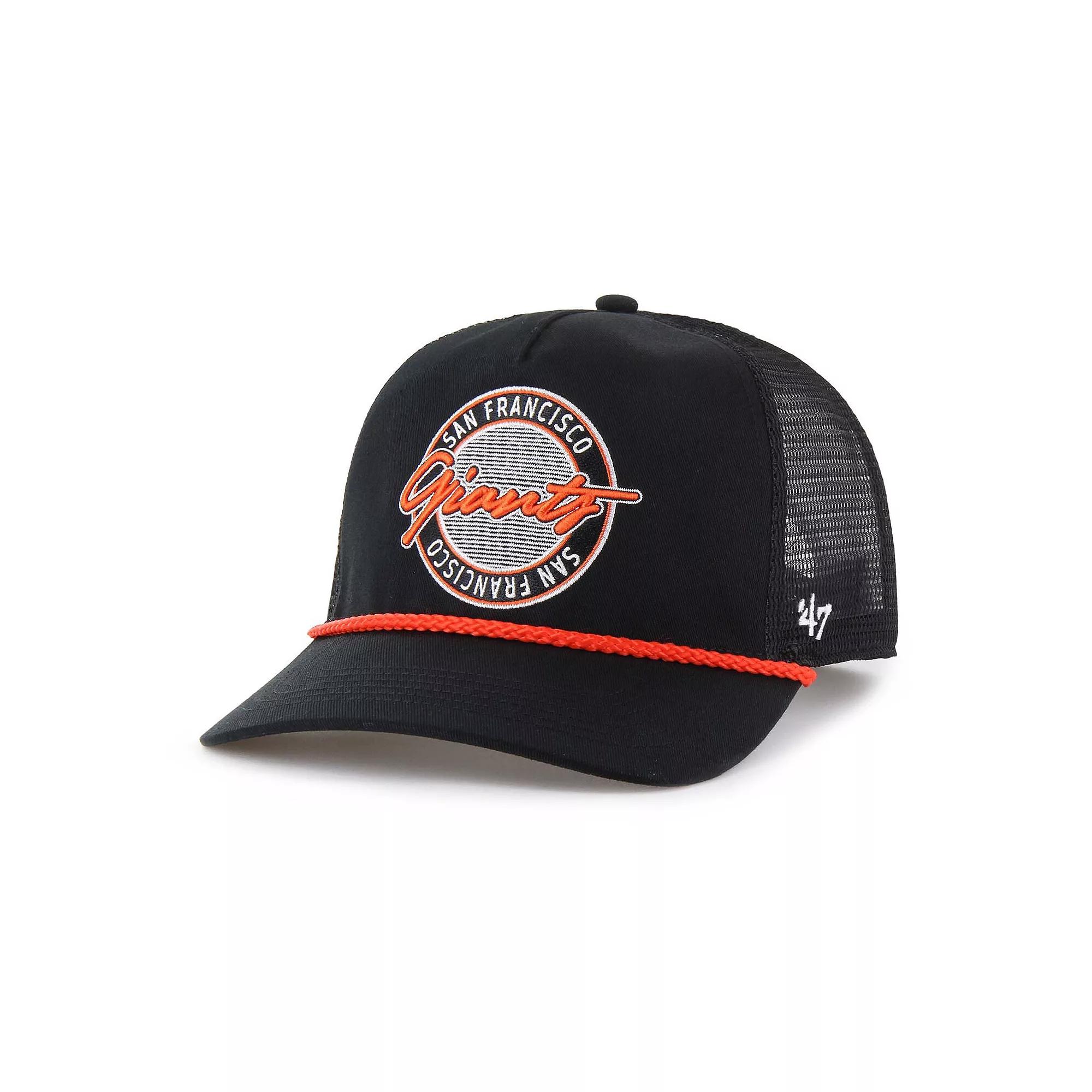 Finish your San Francisco Giants game day look off right with this '47 Promenade Hitch Adjustable Hat. This hat features a classic curved bill and an unstructured, relaxed fit for all-day comfort. The solid front panels are highlighted by an embroidered fabric applique that showcases a stylish script wordmark, proudly displaying your San Francisco Giants pride.Finish your San Francisco Giants game day look off right with this '47 Promenade Hitch Adjustable Hat. This hat features a classic curved bill and an unstructured, relaxed fit for all-day comfort. The solid front panels are highlighted by an embroidered fabric applique that showcases a stylish script wordmark, proudly displaying your San Francisco Giants pride.PRODUCT FEATURESSolid front panels with eyeletsMaterial: 100% Cotton - Front Panel; 100% Polyester - Mid and Rear PanelsOfficially licensedSnap ClosureCurved billUnstructured relaxed fitOne size fits mostMid CrownImportedWipe clean with a damp clothMesh mid and rear panelsEmbroidered fabric applique with script wordmark on front panelsBrand: '47 Size: One Size. Color: Black. Gender: male. Age Group: adult.