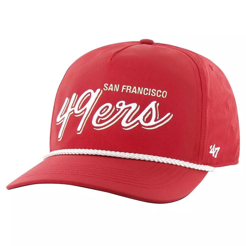 Leave no doubts about your collegiate loyalty when you wear this San Francisco 49ers Fairway Hitch hat. Made by 47, it features the team name embroidered across the front and the San Francisco 49ers logo on the back. A snap closure lets you quickly and easily adjust the fit, while brrr technology ensures a cool, comfortable feel.Leave no doubts about your collegiate loyalty when you wear this San Francisco 49ers Fairway Hitch hat. Made by 47, it features the team name embroidered across the front and the San Francisco 49ers logo on the back. A snap closure lets you quickly and easily adjust the fit, while brrr technology ensures a cool, comfortable feel.PRODUCT FEATURESOfficially licensedLow CrownWipe clean with a damp clothUnstructured relaxed fitEmbroidered graphicsCurved billbrrr technology utilizes three key features (cooling minerals, active wicking, rapid drying) to multiply the cooling effectSnap ClosureContrast-color undervisorFive panels with mid and rear eyeletsBrand: 47ImportedMaterial: 100% NylonOne size fits mostDecorative rope design on visorWoven fabric applique Size: One Size. Color: 49R RED. Gender: male. Age Group: adult.