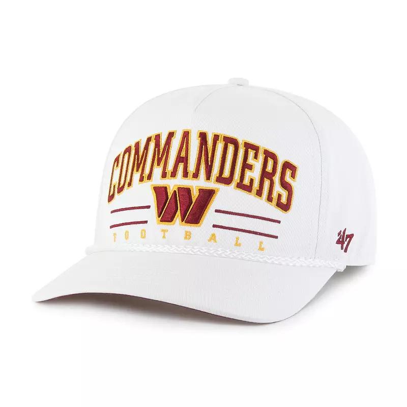 Complete your Washington Commanders game day look with this 47 Roscoe Hitch Rope Adjustable Hat. The 47 Hitch boasts a retro-inspired silhouette constructed with a pinched five-panel crown and a braided rope cord for a unique look. Constructed from garment-washed cotton for a worn-in feel, this hat will quickly become your new favorite.Complete your Washington Commanders game day look with this 47 Roscoe Hitch Rope Adjustable Hat. The 47 Hitch boasts a retro-inspired silhouette constructed with a pinched five-panel crown and a braided rope cord for a unique look. Constructed from garment-washed cotton for a worn-in feel, this hat will quickly become your new favorite.PRODUCT FEATURESMaterial: 100% CottonBrand: 47The 47 Hitch is a retro-inspired silhouette constructed with a pinched five-panel crown and a braided rope cordEmbroidered team logo and name across the front panelsSnap ClosureImportedCurved billWipe clean with a damp clothUnstructured relaxed fitContrast-color undervisorOne size fits mostMid CrownSix panels with eyeletsConstructed from garment-washed cotton for a worn-in feelOfficially licensed Size: One Size. Color: Wft White. Gender: male. Age Group: adult.