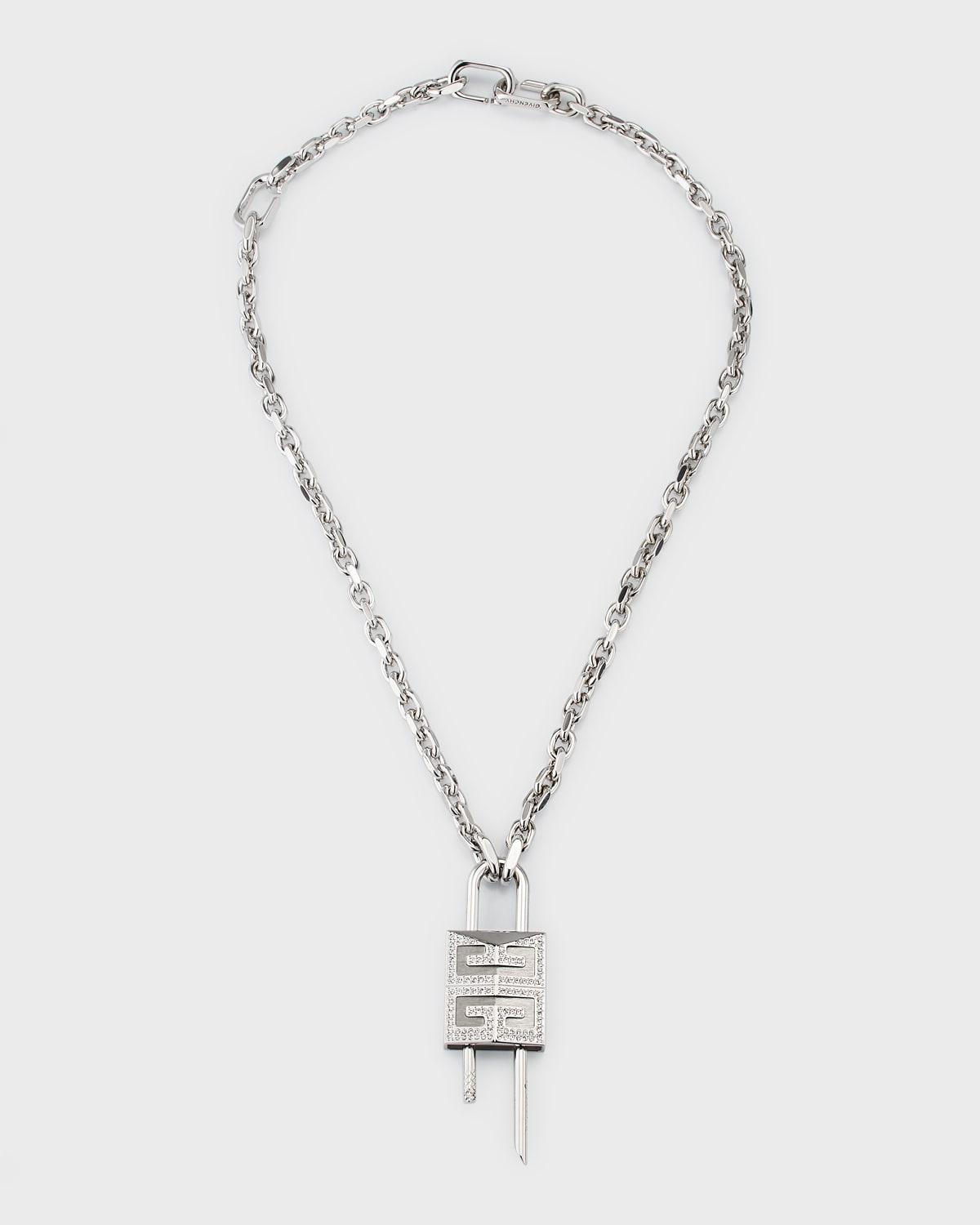 Small Lock necklace in metal with crystals. Necklace with silvery-finish metal links Lock line Removable 4G pendant padlock with GIVENCHY signature engraved, in silvery-finish metal paved with Swarovski crystals and brushed metal GIVENCHY engraved clasp in silvery-finish metal Adjustable length from 17.7 to 19.7 in Matching earring sold separately Composition: 100% Brass Secondary material: 100% Crystals Made In Italy. Lsd Rtw - Givenchy Rtw > Givenchy > Saks Fifth Avenue > Barneys. Givenchy. Color: Silvery.
