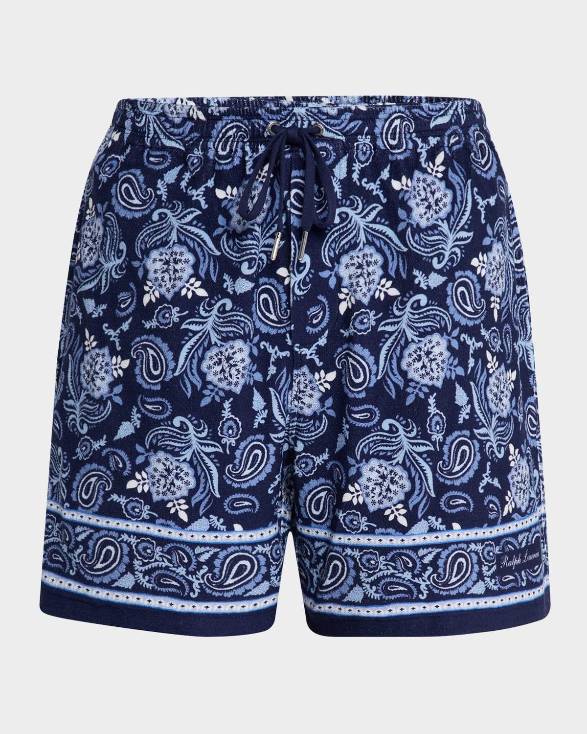 Crafted of cotton terry, these Ralph Lauren Purple Label shorts are adorned with a paisley print. A drawstring waistband and back welt pocket lend refined comfort to this pair. Drawstring waist Side seam pockets Back welt pocket Pulls on 100% cotton Dry clean Made in Italy SIZE & FIT Inseam: about 5.5 Waist: about 30 Rise: about 12.5 Model measurements: 62 tall, 40 chest, 31 waist Model is wearing a US size Medium. Men Luxury Coll - Rl Purple Label > Ralph Lauren Purple Label > Saks Fifth Avenue > Barneys. Ralph Lauren Purple Label. Color: Maiori Choppa Border Print. Size: Medium.