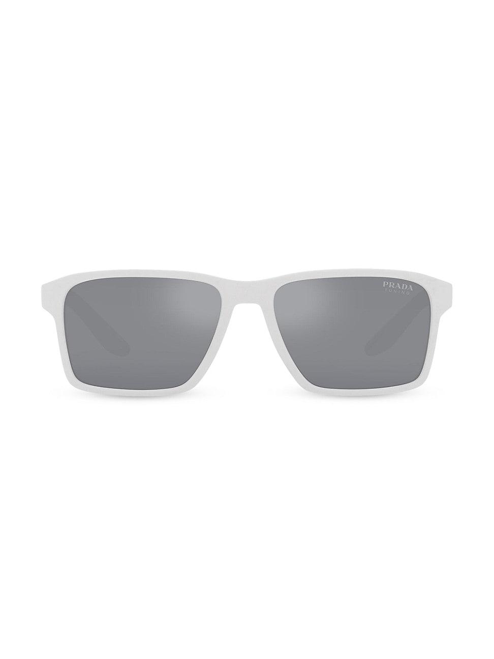 Prada Sports sunglasses feature solid lenses and a rectangular silhouette. This pair is finished with contrast brand lettering on the temples and built-in textured nose grips. 100% UV protection Solid lenses Includes case and cleaning cloth Propionate/plastic Made in Italy SIZE 58mm lens width 17mm bridge width 145mm temple width ABOUT THE BRAND Since 1913, Prada has been synonymous with cutting-edge style. Its intellectual universe combines concept, structure and image through codes that go beyond trends. Focusing on experimentation, its fashion has become a benchmark to those who challenge conventions. Soft Accessories - Men Sunglasses > Prada Linea Rossa > Saks Fifth Avenue > Barneys. Prada Linea Rossa. Color: Natural White.