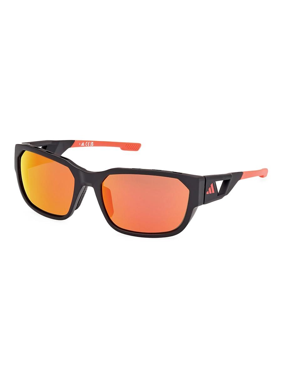 These sporty sunglasses from acetate are adorned with mirrored lenses and cut-out logo temples. 100% UV protection Mirrored lenses Includes case and cleaning cloth Acetate Imported SIZE 58mm lens width 18mm bridge width 130mm temple length. Soft Accessories - Men Sunglasses > Adidas > Saks Fifth Avenue > Barneys. adidas. Color: Matte Black Orange Mirror.