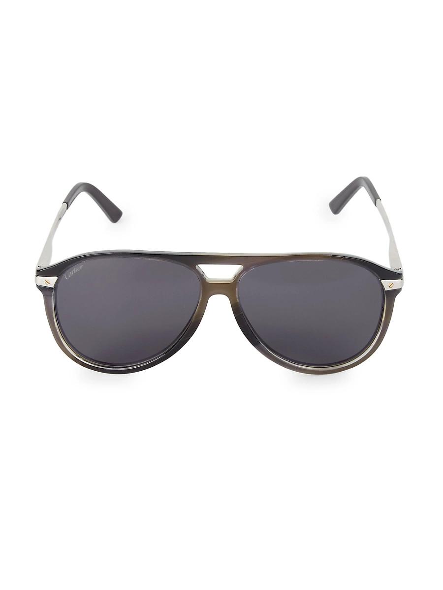 Essential aviator frames with signature contrast metal trim at the temples. Acetate Made in France SIZE 60mm lens width 13mm bridge width 145mm temple length. Soft Accessories - Men Sunglasses > Cartier > Saks Fifth Avenue > Barneys. Cartier. Color: Grey.