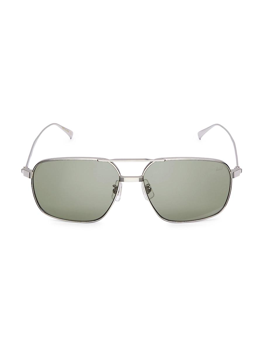 Navigator shape sunglasses enriched by a double bridge with a sophisticated statement. 100% UV protection Solid lenses Optional lens replacement Temples are enriched with the Engine turn pattern Case and cleaning cloth included Titanium Made in Japan SIZE 60mm lens width 15mm bridge width 145mm temple length. Soft Accessories - Men Sunglasses > Dunhill > Saks Fifth Avenue > Barneys. dunhill. Color: Silver.