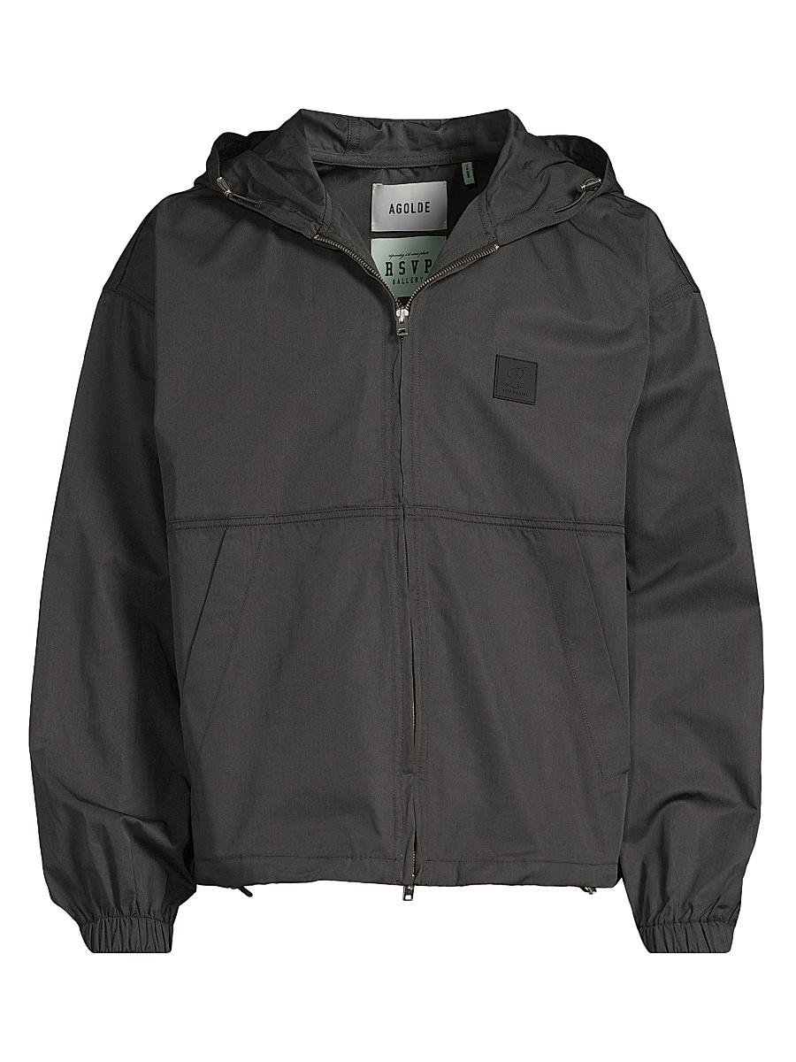 From the Agolde X RSVP Gallery Collaboration. The Harrier windbreaker jacket from Agolde is crafted of cotton and features weather-ready inspired details including elasticized cuffs and a drawcord hood and hem.Drawcord hoodLong sleeves, elasticized cuffsSide slant pocketsDrawcord hemFront zip closure100% cottonMachine washMade in USASIZE & FITAbout 25.5" from shoulder to hemModel measurements: 6'2" tall, 40" chest, 31" waistModel is wearing a US size Medium