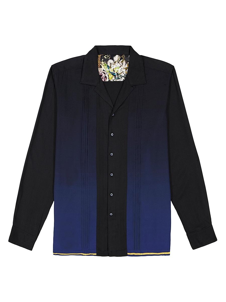 Robert Graham sport shirt featuring a large Alchemy Of Spirit motif on the back Signature contrast undercollar Notch collar Button placket Long sleeves Mitered barrel cuffs Vented sides Straight hem Classic fit Viscose Machine wash cold Imported