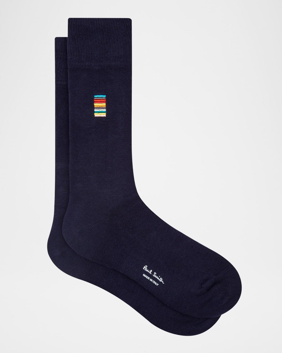 Paul Smith "Alfie" crew socks in cotton feature signature stripe embroidery Ribbed cuffs to prevent slipping Cotton Made in Italy Model is 6'1"/185cm.
