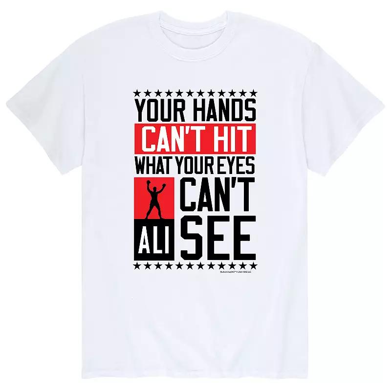 Show off your love for all things Muhammad Ali in this Officially Licensed short sleeve tee. Our adult short sleeve tee is lightweight, soft and durable; perfect for everyday wear! | Muhammad Ali Men's Your Hands Cant Hit Graphic Tee, White, Medium