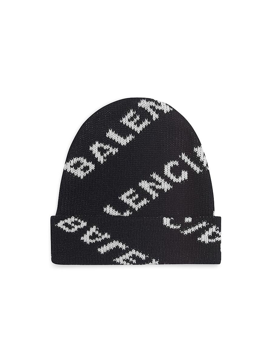 Allover Logo Beanie in black and white wool knit. Wool knit Folded panel at the bottom Jacquard Balenciaga allover logo Made in Italy Dry cleaning. Lsd Handbags - Balenciaga > Balenciaga > Saks Fifth Avenue > Barneys. Balenciaga. Color: Black.
