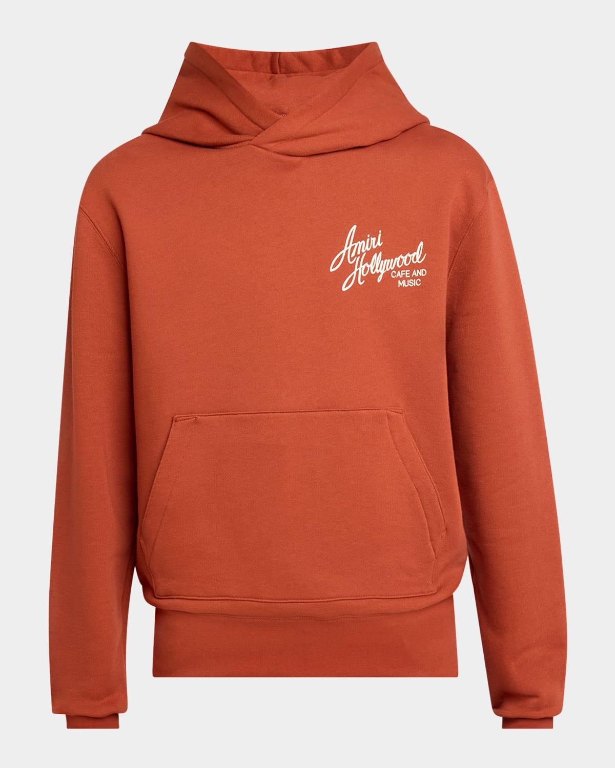 Amiri sweatshirt crafted from soft cotton terry Graphic Amiri Hollywood print on back Hooded neckline Kangaroo pocket Dropped shoulders Long sleeves Banded cuffs and hem Pullover style Cotton Dry clean Made in Italy