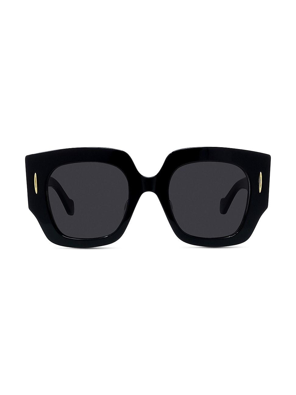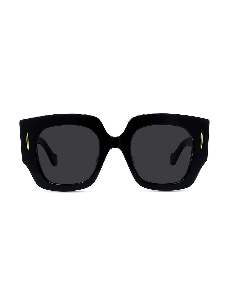 From the Anagram Collection, Loewe presents these geometric sunglasses, a testament to the brands meticulous craftsmanship. The acetate frame features the iconic Anagram metal signature in relief on both temples, a detail that adds a touch of sophistication to this accessory. 100% UV protection Acetate frame Made in Italy SIZE 50mm lens width 22mm bridge width 140mm temple length. Soft Accessories - Men Sunglasses > Loewe > Saks Fifth Avenue > Barneys. LOEWE. Color: Shiny Black Smoke.