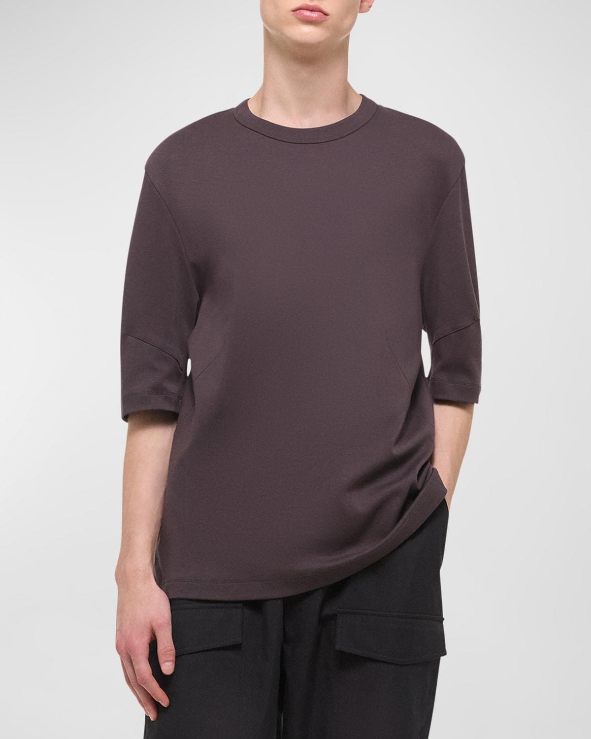 Helmut Lang Apex solid Tshirt with shaping darts at waist and sleeves Crew neckline Short sleeve; approx. 19.3L Oversized fit Pullover style Cotton Unlined Machine wash cold Made in Portugal