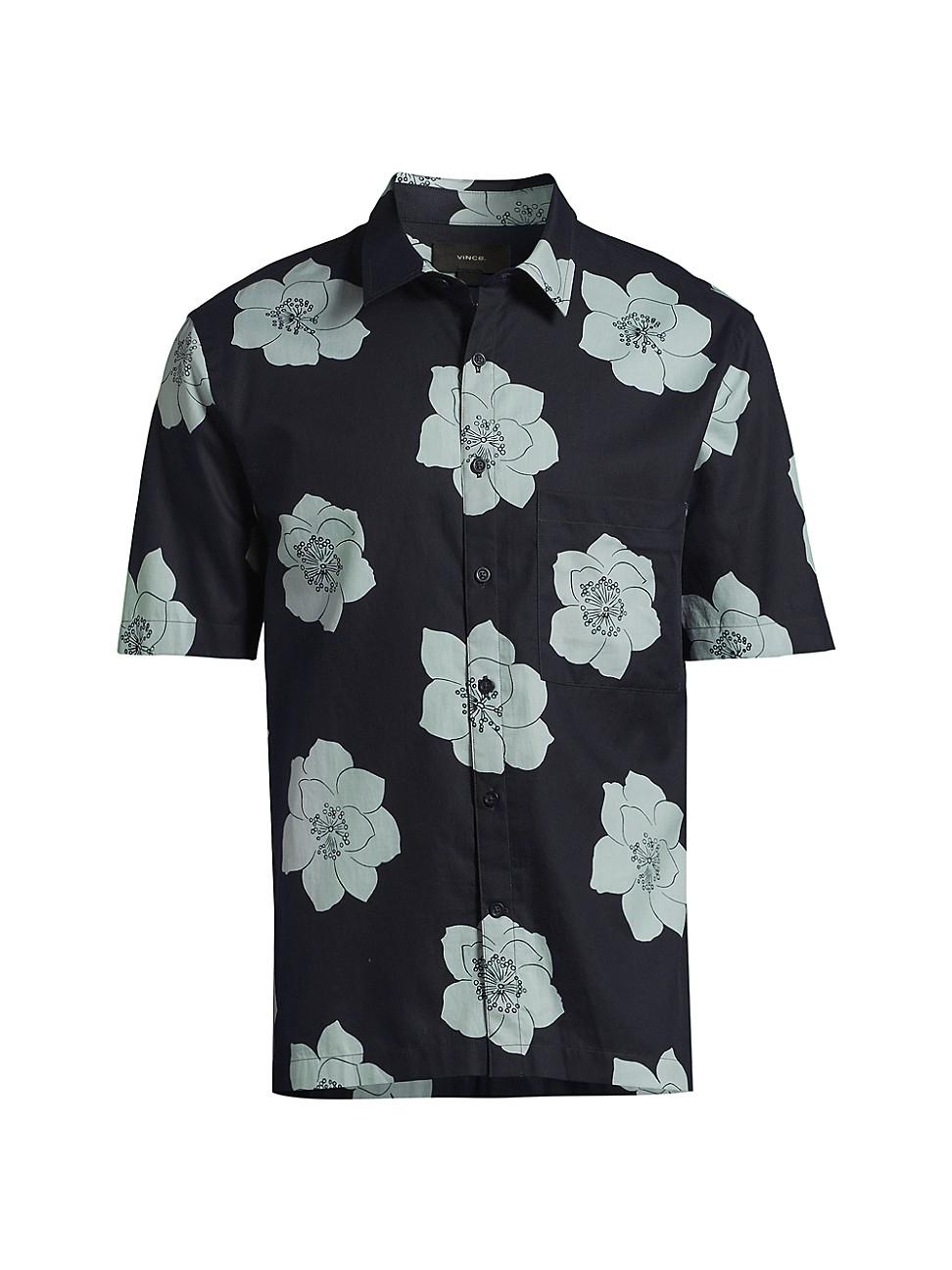 Vince presents a classic-fit short-sleeve shirt crafted from soft cotton blend fabric, adorned with a painterly apple blossom print. Point collar Short sleeves Button-front closure 55% cotton/45% lyocell Machine wash Imported SIZE & FIT About 28 from shoulder to hem Model measurements: 62 tall, 40 chest Model is wearing a US size Medium. Mens Modern Coll & Outer - Modern Collections > Vince > Saks Fifth Avenue > Barneys. Vince. Color: Coastal Ceramic Blue. Size: XS.