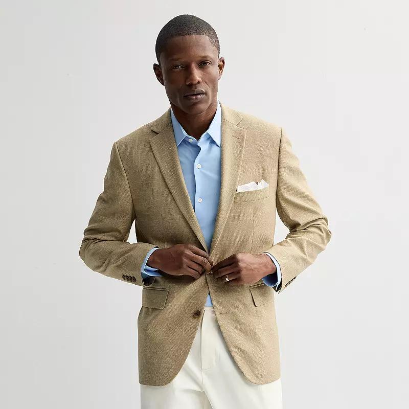 Unforgettable style. Featuring a modern look and slim fit, this mens Apt. 9 suit jacket will have them remembering you. Unforgettable style. Featuring a modern look and slim fit, this mens Apt. 9 suit jacket will have them remembering you. Stretch fabric Notched lapels 2-button front Multiple pockets Long sleevesFIT & SIZING Slim fitFABRIC & CARE Polyester, viscose, spandex Dry clean ImportedSUSTAINABILITY FEATURES Tested for harmful substances Certification No. VC020 186096 STANDARD 100 by OEKO-TEX CERTIFIED www.oeko-tex.com/standard100 Testing Institute: Testex AG, Swiss Textile Testing Institute Size: 40 - Regular. Color: Beige. Gender: male. Age Group: adult.