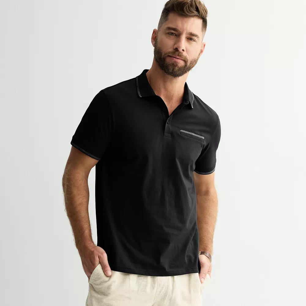 Experience ultimate comfort with the Apt. 9 men's polo, crafted from soft touch, stretch fabric that moves with you. Plus, by choosing this stylish piece, you're supporting more sustainable cotton farming for a better future. Click on this MEN'S GUIDE to find the perfect fit and more!FEATURES Foldover polo collar Button-front closure Short sleeves Ribbed cuffs Vented hem One pocket Soft touch, stretchy single jerseyFIT & SIZING 27 1/2-in. to 30 1/2-in. length Regular fitFABRIC & CARE 100% cotton Machine wash ImportedRESPONSIBLE Supports more sustainable cotton farming Size: XL. Color: Black. Gender: male. Age Group: adult.