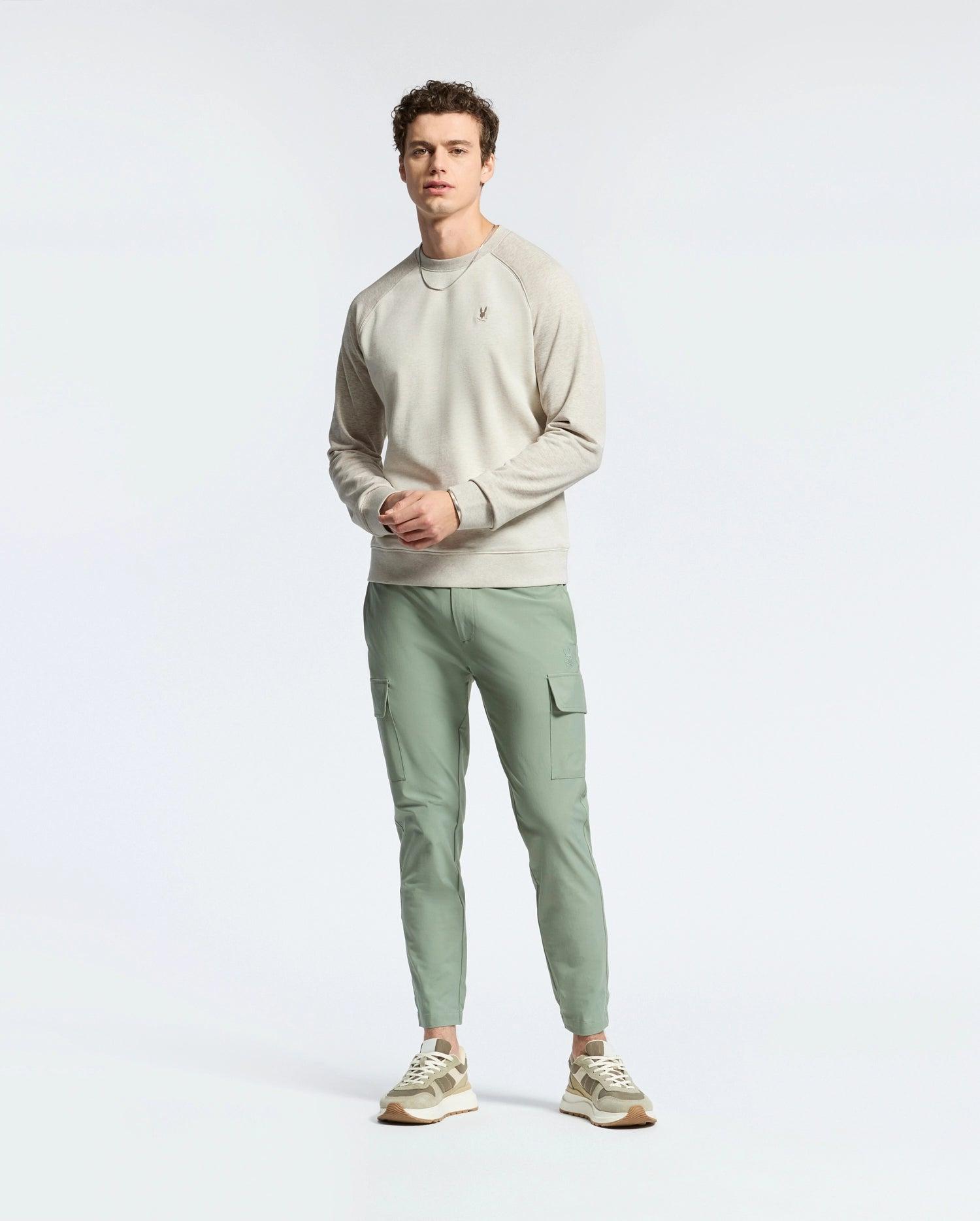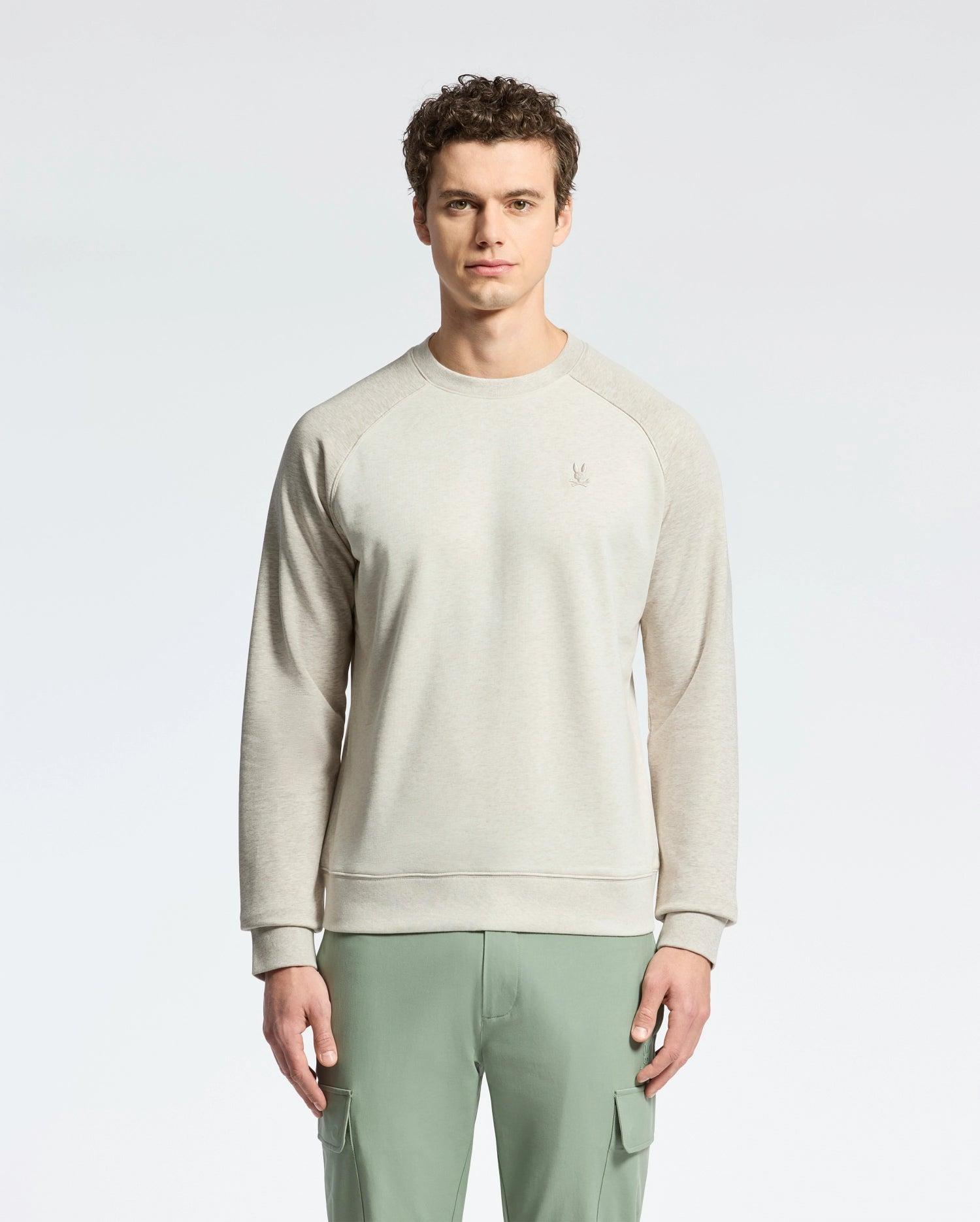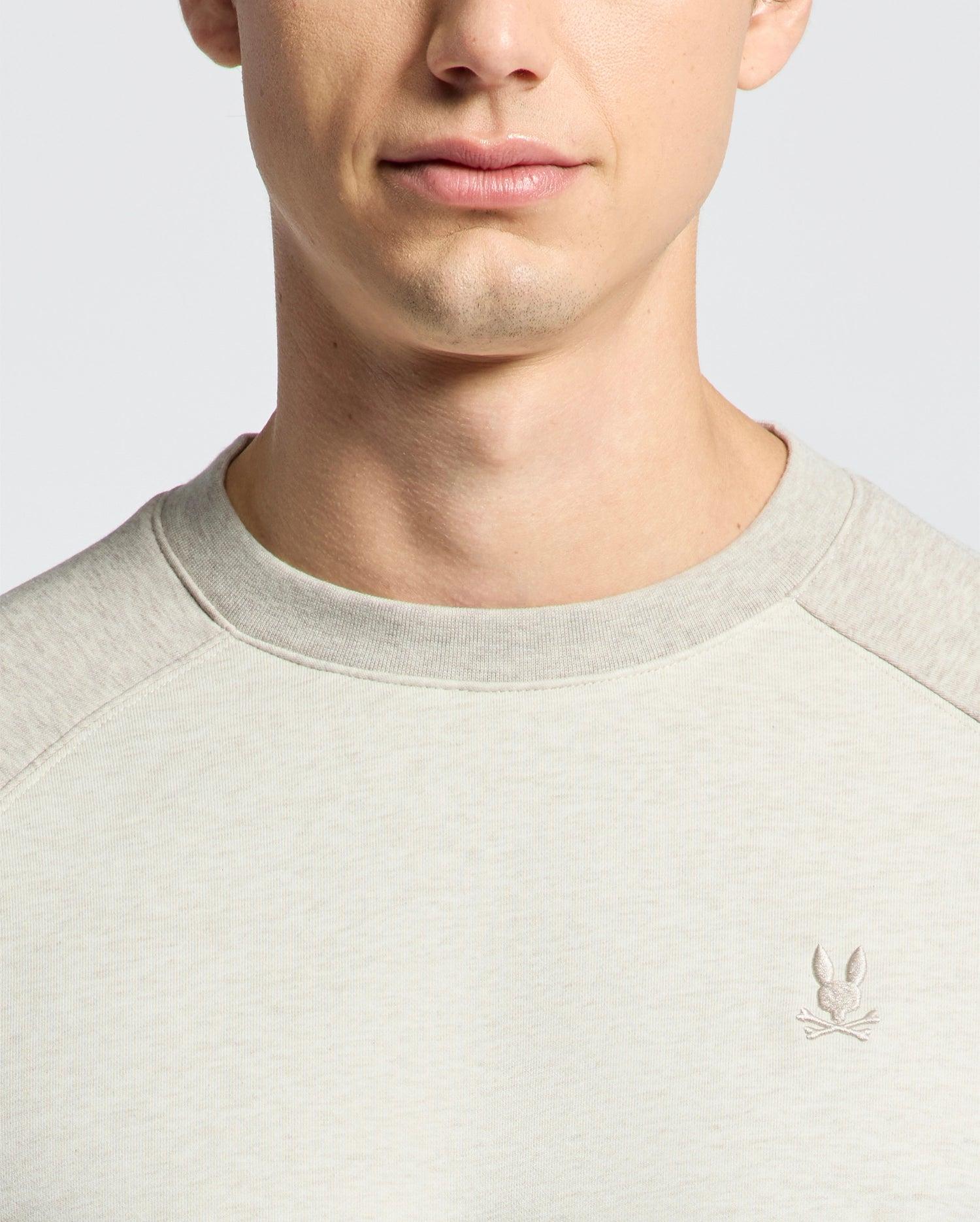 For days you don't feel like making any decisions, unlock instant monochrome styling with a two-tone melange. Inspired by sport, alive with first-class fashion.Knit - 100% CottonMade in ChinaCotton jerseyColor blockedEmbroidered BunnyRaglan sleevesRib knit crewneck, cuffs, and hemModel height is 6'3 (approx. 190cm) and is wearing a size medium.