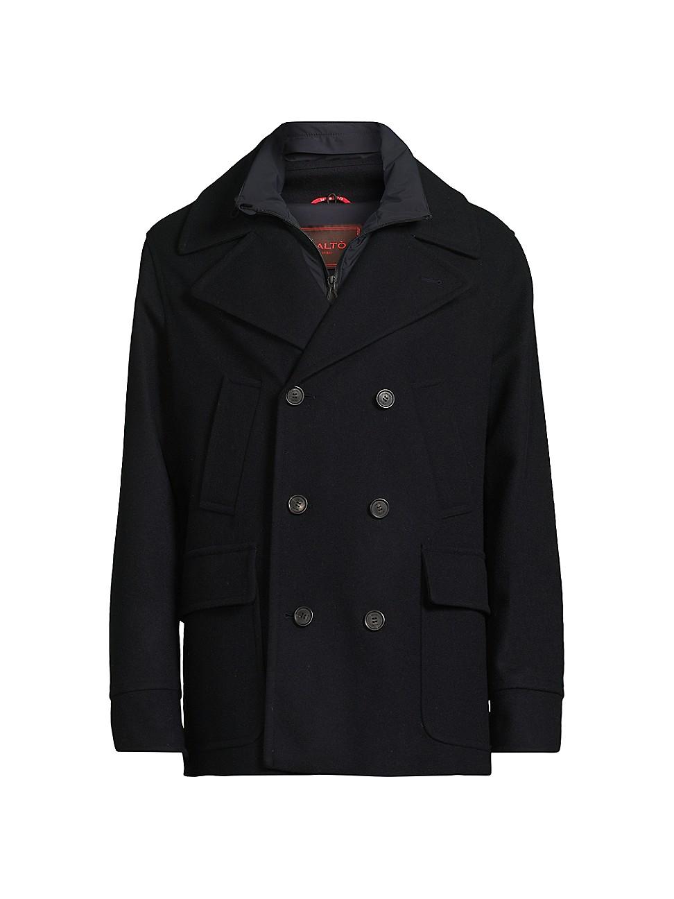 This Palt Armando pea coat is crafted of water-resistant Italian wool. A zip-off bib offers additional protection and warmth. Notch collar Long sleeves Side flap pockets Removable vest lining Double-breasted button closure 80% wool/20% nylon Vest: 60% wool/30% polyester/10% cashmere Lining: 44% wool/29% nylon/22% polyester/5% cashmere Dry clean Made in Italy SIZE & FIT About 31 from shoulder to hem Model measurements: 62 tall, 40 chest, 31 waist Model is wearing a US size Medium. Mens Modern Coll & Outer - Contemporary Outerwear > Palt > Saks Fifth Avenue > Barneys. Palt. Color: Black. Size: 44.