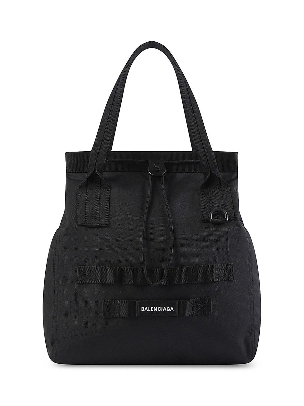 Army medium tote bag in recycled nylon. Recycled casual nylon Tote bag Two handles Drawstring closure Balenciaga logo patch on front Magnetic patch pocket on the sides Inner zipped pocket Inner patch pocket Back magnetic patch pocket Cotton canvas lining Made in Italy Wipe with a soft cloth SIZE 13.3W x 15.7H x 5.5D. Lsd Handbags - Balenciaga > Balenciaga > Saks Fifth Avenue > Barneys. Balenciaga. Color: Black.