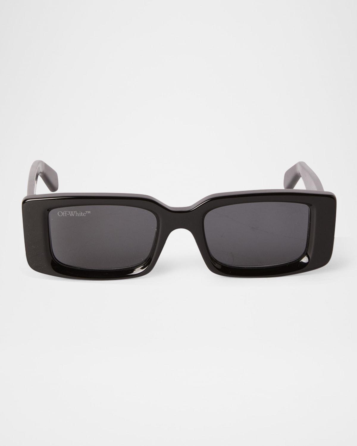 OffWhite Arthur rectangle sunglasses in acetate Lens/bridge/temple (in mm): 50 20 150 Solidcolor lenses Right lens logo script Saddle nose bridge 3D Arrows logo on the temples Tapered arms Curved temple tips Acetate 100% UVA/UVB protection Made in Italy
