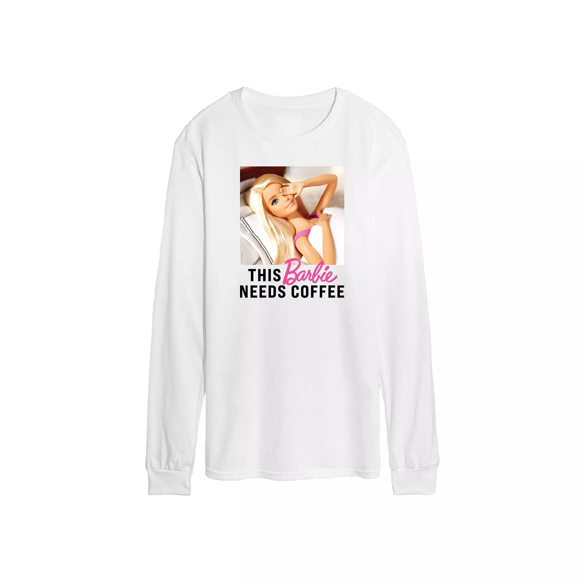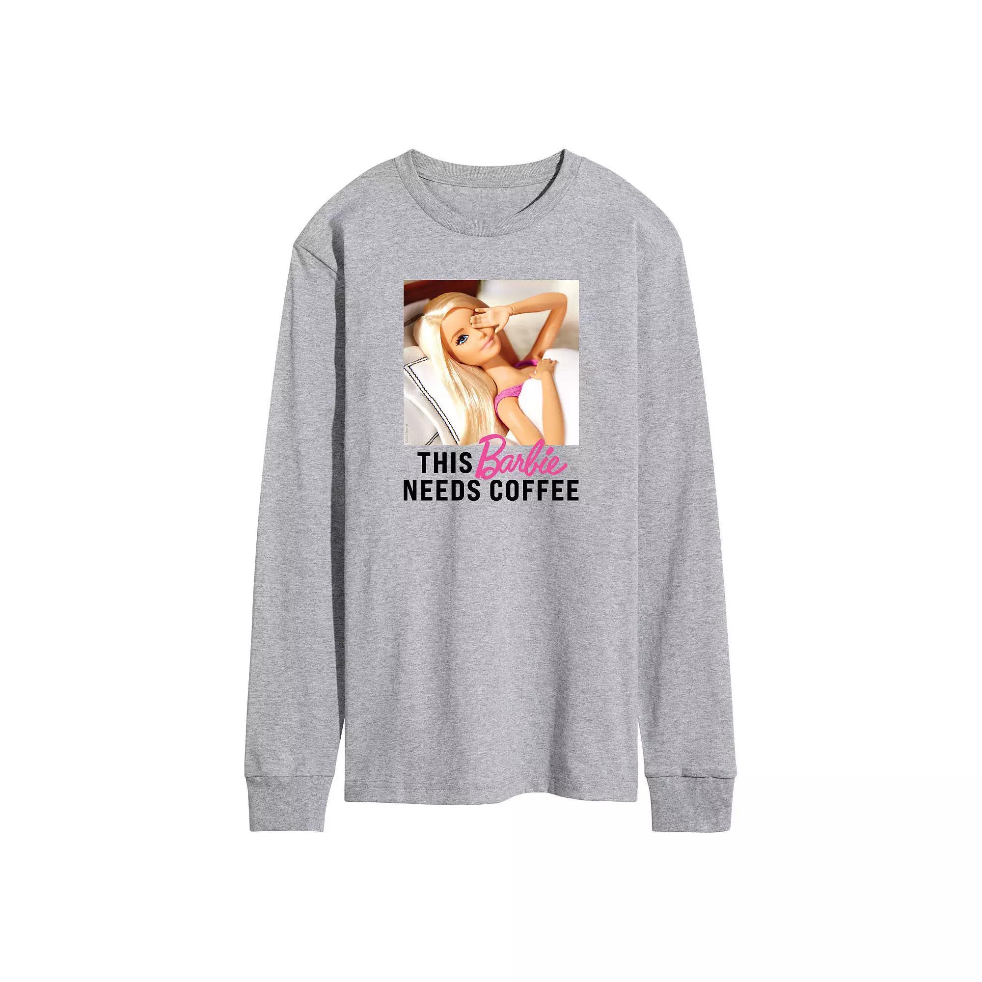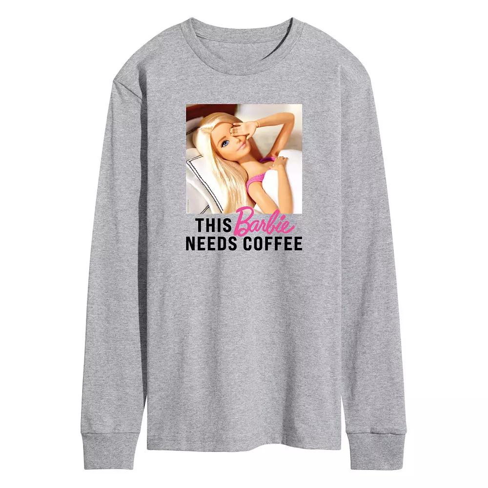 Keep an eye on style with this mens Barbie This Barbie Needs Coffee Long Sleeve Graphic Tee. BARBIE and associated trademarks and trade dress are owned by, and used under license from, Mattel. 2023 Mattel. Keep an eye on style with this mens Barbie This Barbie Needs Coffee Long Sleeve Graphic Tee. BARBIE and associated trademarks and trade dress are owned by, and used under license from, Mattel. 2023 Mattel. FEATURES Crewneck Long sleeveFABRIC & CARE Solid colors: cotton; Heather colors: cotton, polyester Machine wash Imported Color: Med Grey. Gender: male. Age Group: adult.