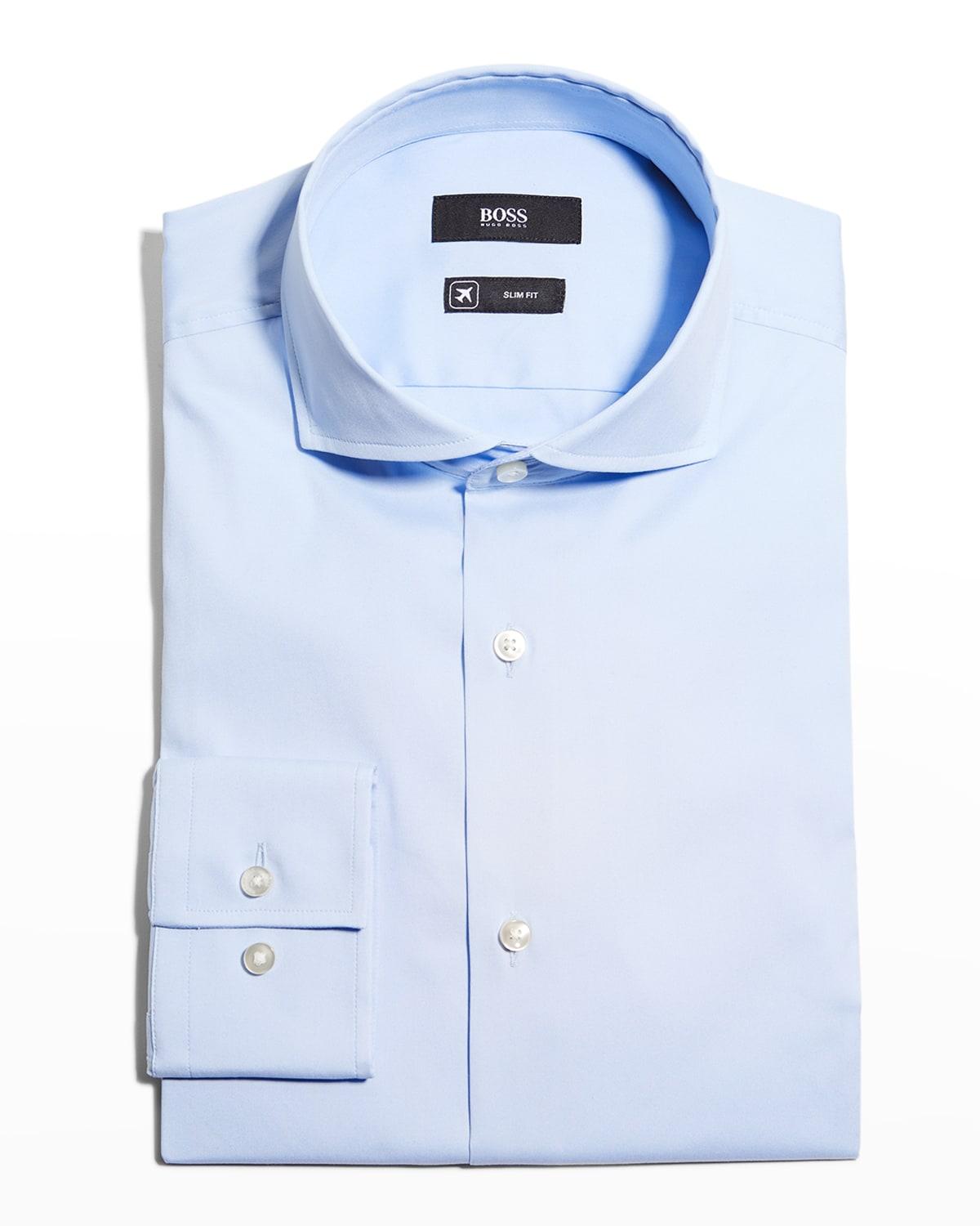 Mens Basic Solid Long-Sleeve Dress Shirt