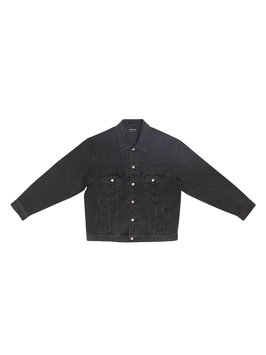 Overdyed Denim Unifit Large fit 7 button front 2 buttoned pockets at chest 2 slash pockets Buttoned at cuffs Adjustable buttoning at waist Balenciaga engraved flex buttons Balenciaga inlaid patch at back BB artwork sprayed at back Made in Japan Dry cleaning The model is wearing a FR size S