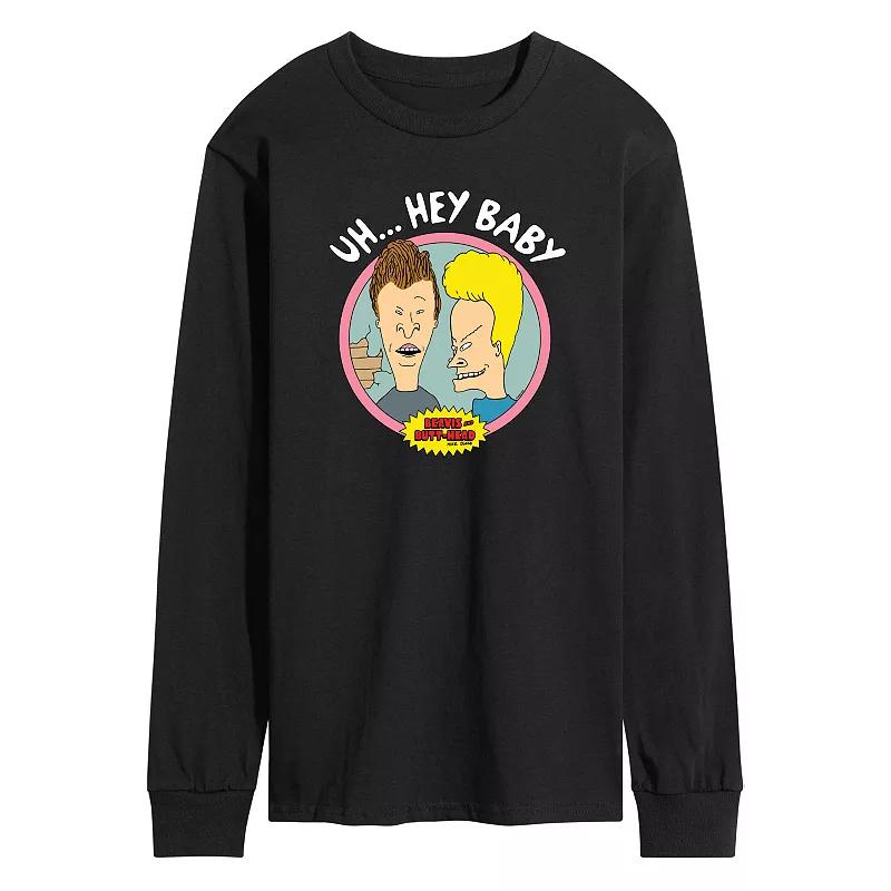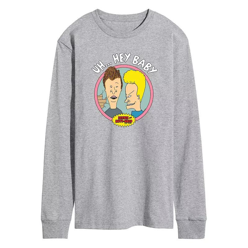 Add a quirky touch to your wardrobe with this Beavis & Butthead Uh... Hey Baby Long Sleeve Graphic Tee. Add a quirky touch to your wardrobe with this Beavis & Butthead Uh... Hey Baby Long Sleeve Graphic Tee. FEATURES Crewneck Long sleeveFABRIC & CARE Solid colors: cotton; Heather colors: cotton, polyester Machine wash Imported Color: Grey. Gender: male. Age Group: adult.