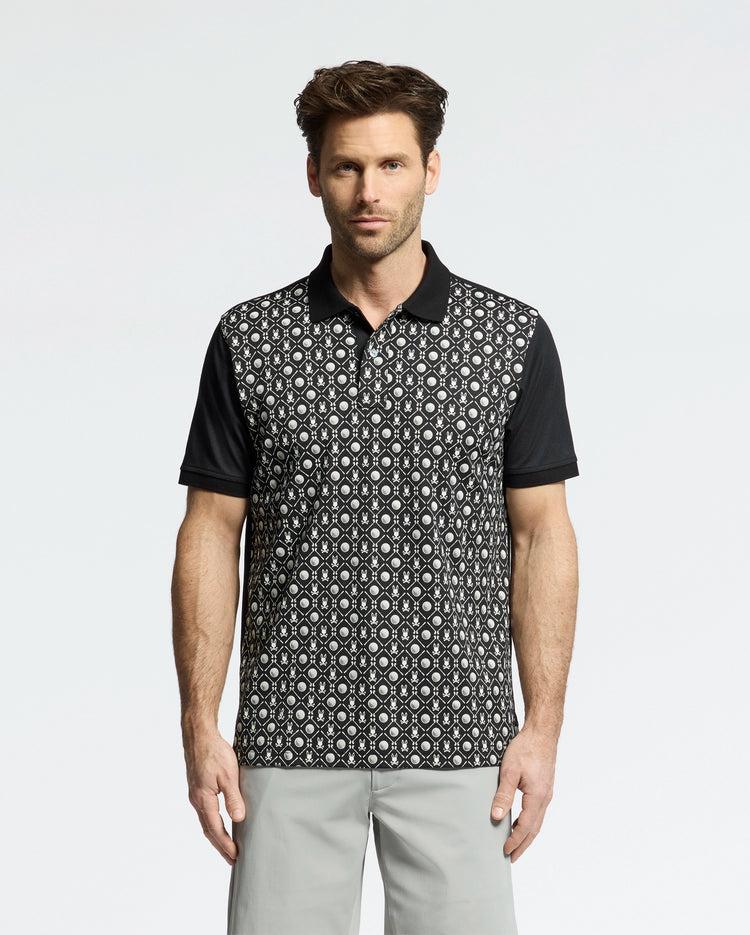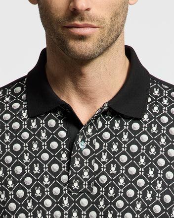 If you love teeing off in style, the Pima cotton Beckett polo is bound to be your favorite new piece. With natural four-way stretch piqué, great breathability, and a bold Bunny-and-golf-ball-patterned design, its all you need to conquer any course. Knit - 100% Pima cottonMade in PeruRegular fitAllover graphic printCrease-resistant collarNatural four-way stretchMother-of-Pearl buttons